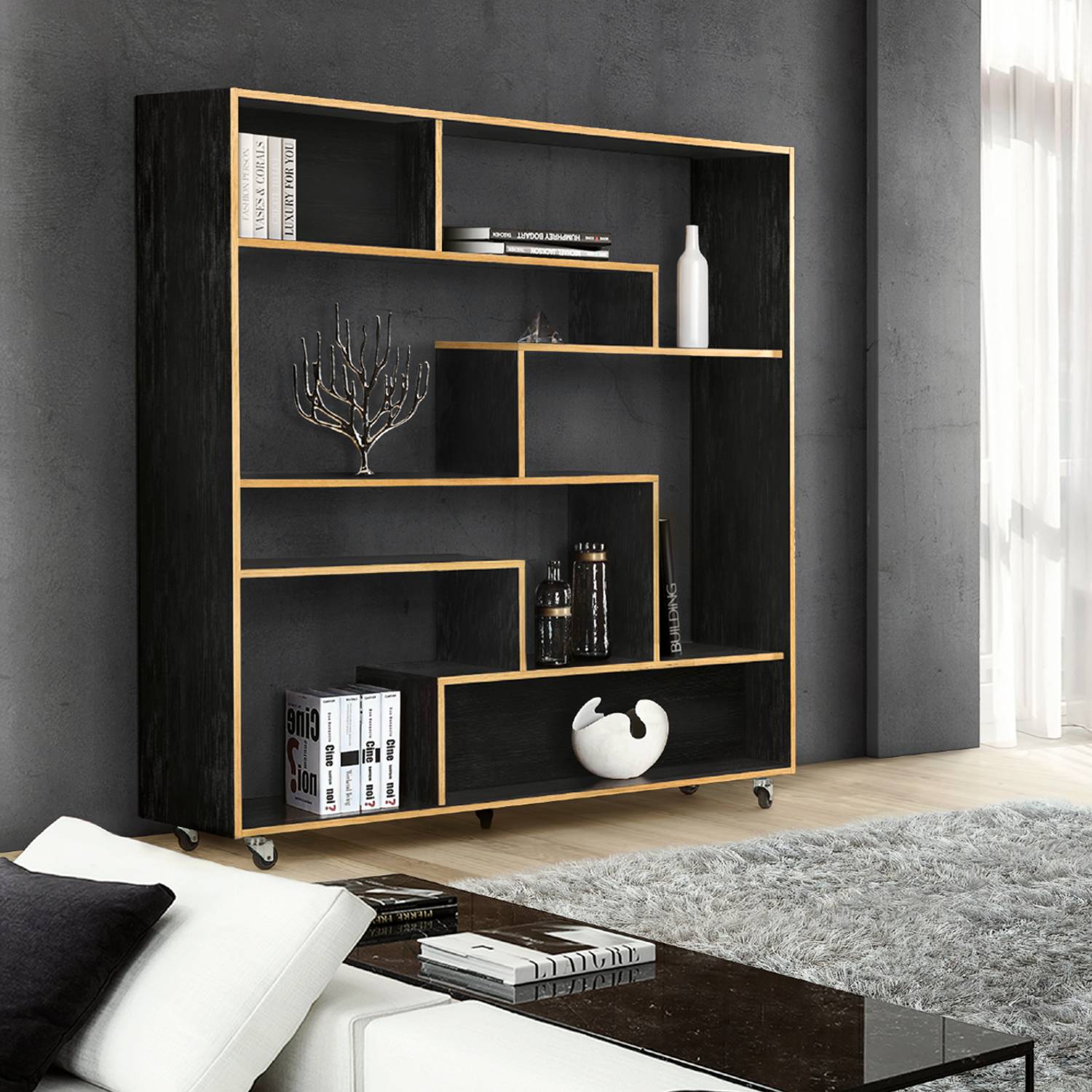 Vă doriți o bibliotecă ușor de mutat sau un separator practic care să delimiteze elegant spațiile dintr-o încăpere? Biblioteca asimetrică negru/stejar South este soluția ideală, mai ales pentru locuințele cu suprafețe reduse.