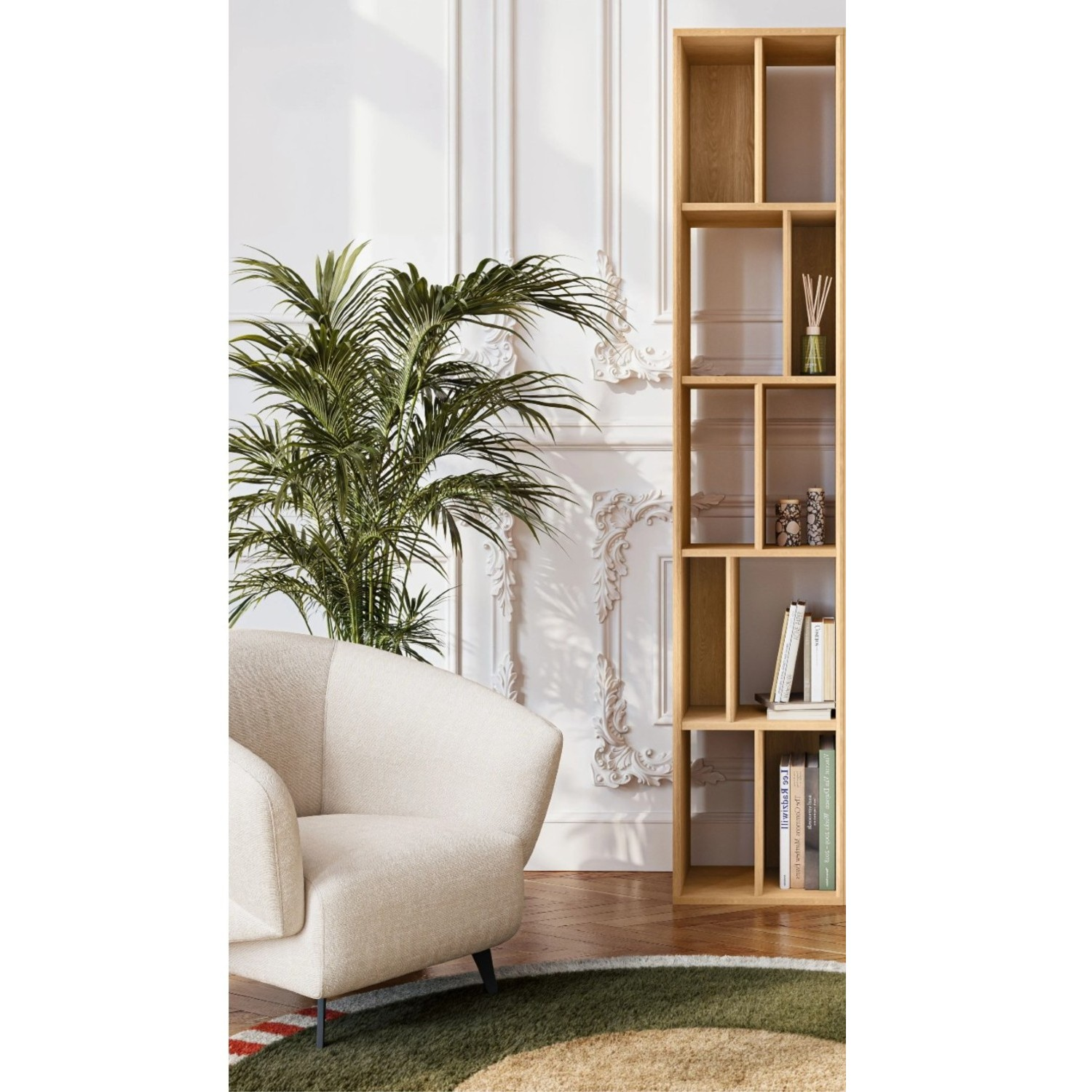 Biblioteca mică din stejar natur Will, produsă în România, impresionează prin simplitatea și funcționalitatea designului său. Multiplele sale deschideri creează un aspect vizual subtil care permite luminii să circule și să creeze un joc de profunzime. Dispunerea asimetrică structurează încăperea, punând în valoare exponatele. Cu linii curate, proporții echilibrate și finisaje realizate cu grijă, această bibliotecă aduce un plus de rafinament oricărui living. Construită din PAL de calitate, acoperit cu furnir natural de stejar deschis, biblioteca îmbină durabilitatea cu estetica modernă, fiind atât practică, cât și decorativă.