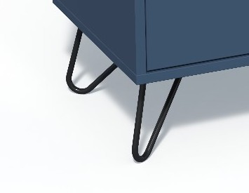 Designul este completat de picioarele metalice elegante, vopsite negru mat, care adaugă un aer modern și industrial, asigurând totodată o susținere solidă și o distanță optimă față de podea pentru o curățare ușoară dedesubt.