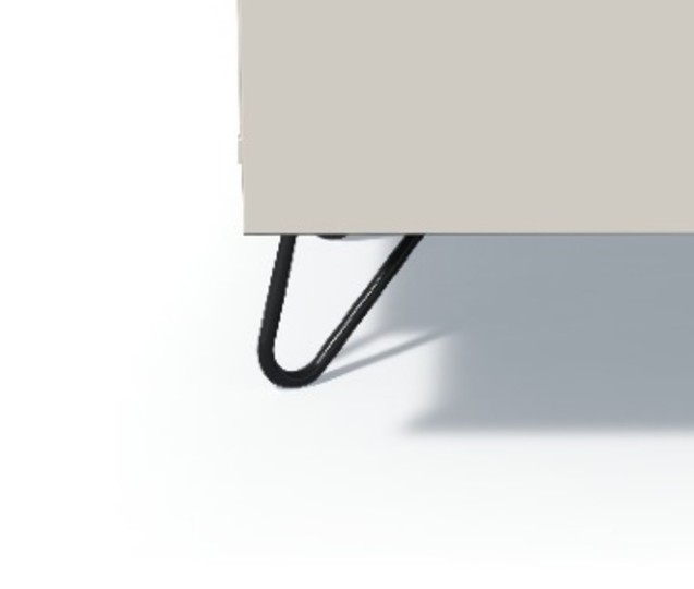 Designul este completat de picioarele metalice elegante, vopsite negru mat, care adaugă un aer modern și industrial, asigurând totodată o susținere solidă și o distanță optimă față de podea pentru o curățare ușoară dedesubt.