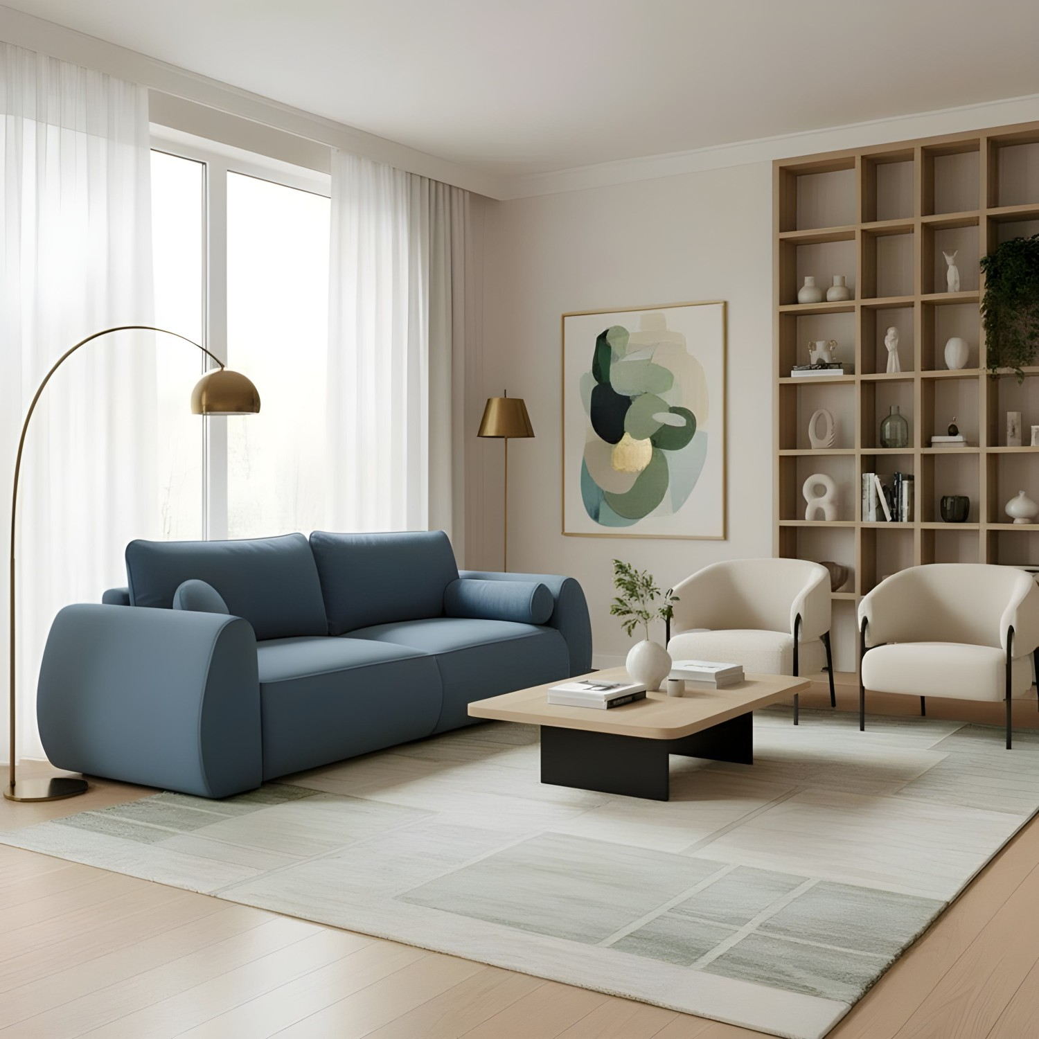 Canapeaua extensibilă 3 locuri albastru Borneo, simplă și funcțională, este alegerea perfectă pentru un spațiu clasic sau modern. Realizată pe o structură solidă de lemn de fag și pin, cu un șezut confortabil din arcuri de tip B și spătar cu arcuri Bonell plus spumă, canapeaua extensibila 3 locuri albastru Borneo se transformă cu ușurință într-un pat confortabil de 143 x 202 cm sau într-un colțar de stânga sau de dreapta, după preferințe, cu dimensiunea de 110 x 257 cm. Canapeaua este prevazută cu spațiu de depozitare încăpător având 2 lăzi pentru aranjarea lenjeriei sau a pernelor și pilotei. Pernele sunt umplute cu un amestec de bile de silicon și spumă. Datorită materialului textil folosit canapeaua extensibilă 3 locuri albastru Borneo este placută la atingere, un plus de eleganță oferind cusăturile și perna decorativă.