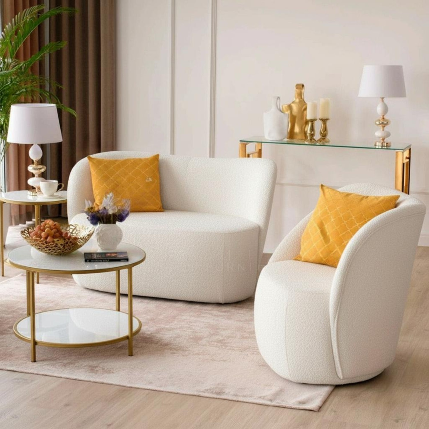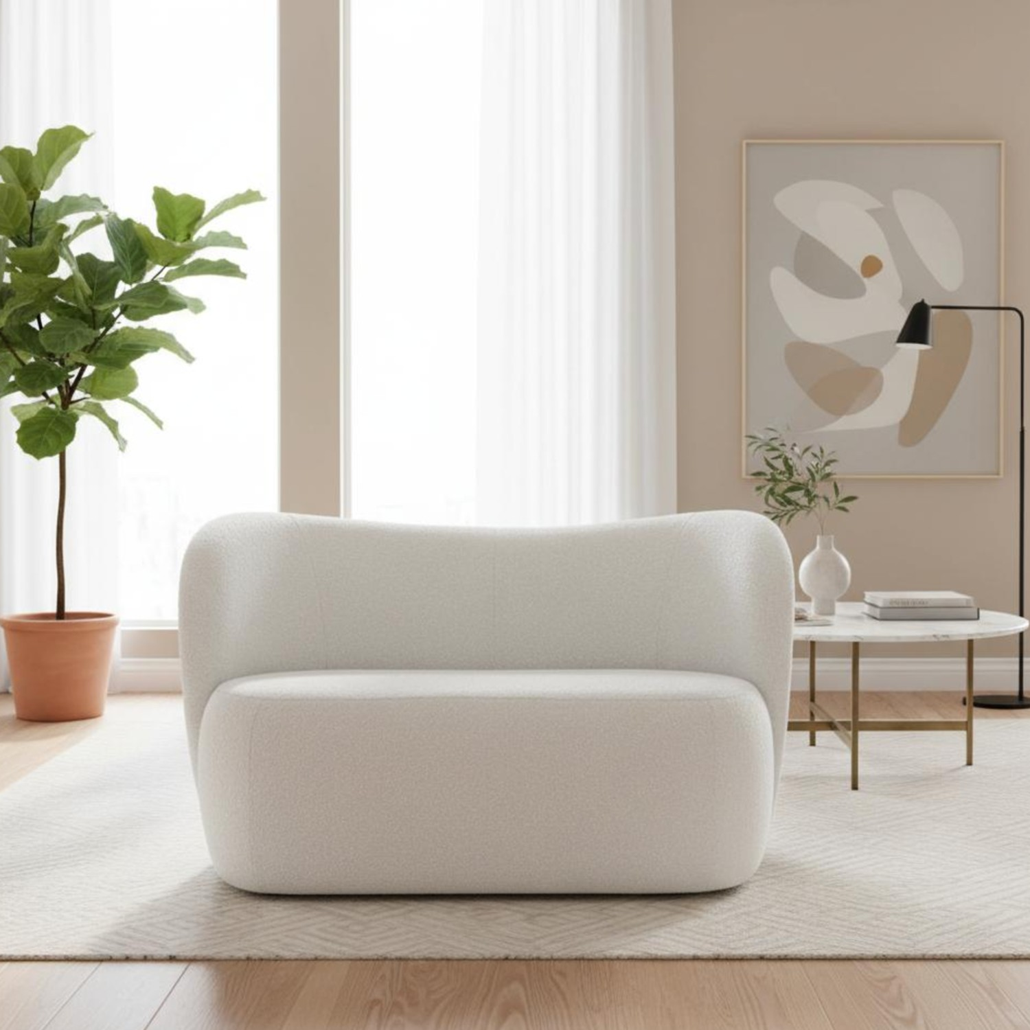 Canapeaua fixa de 2 locuri alb Nico este o canapea de designer care va aduce multă căldură în interiorul casei tale datorită formelor sale aerodinamice care se combină armonios între ele, creând un aspect aristocratic. Tapițeria este realizată din țesătură boucle groasă (Baloo 2073), structurată, cu o țesătură strânsă și răsucită. Acest lucru face ca mobilierul din material boucle să arate lejer și pufos. Datorită acestor avantaje, canapeaua fixa 2 locuri alb Nico va funcționa excelent într-o sală de așteptare, apartament sau cafenea. Impreuna cu taburetul, fotoliul sau canapeaua de 3 locuri din aceeasi colectie creeaza un decor luxox in camera de zi. Canapeaua fixa de 2 locuri alb Nico se remarcă prin confortul său ridicat de utilizare, datorită sezutului și spătarului profilate corespunzător. Construcția solidă asigură stabilitate și durabilitate, ceea ce vă va permite să vă bucurați de ea mulți ani. Ridicati designul din camera de zi cu la un nivel superior cu o canapea fixa 2 locuri alb Nico.