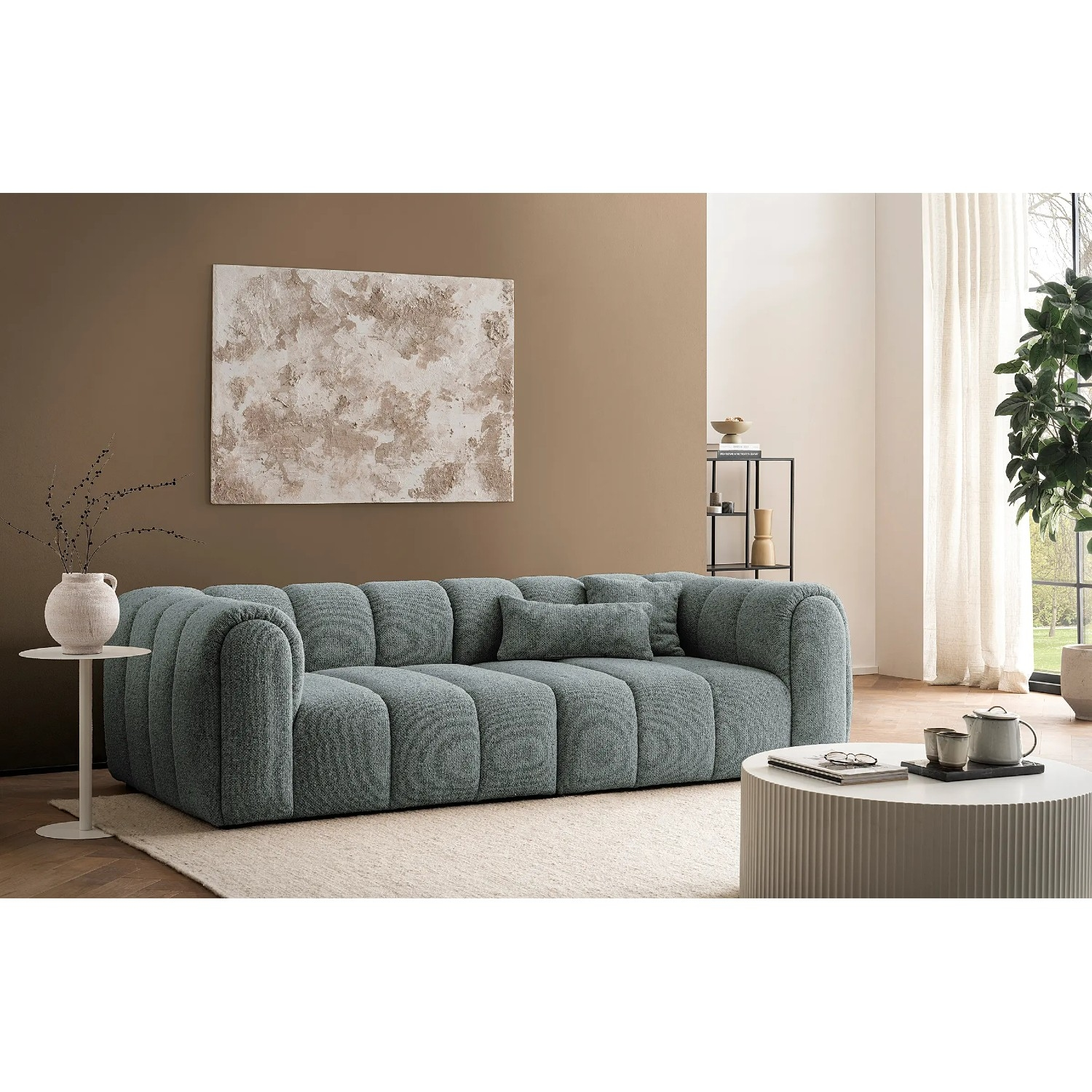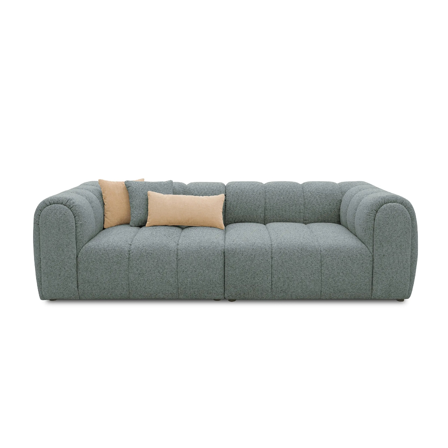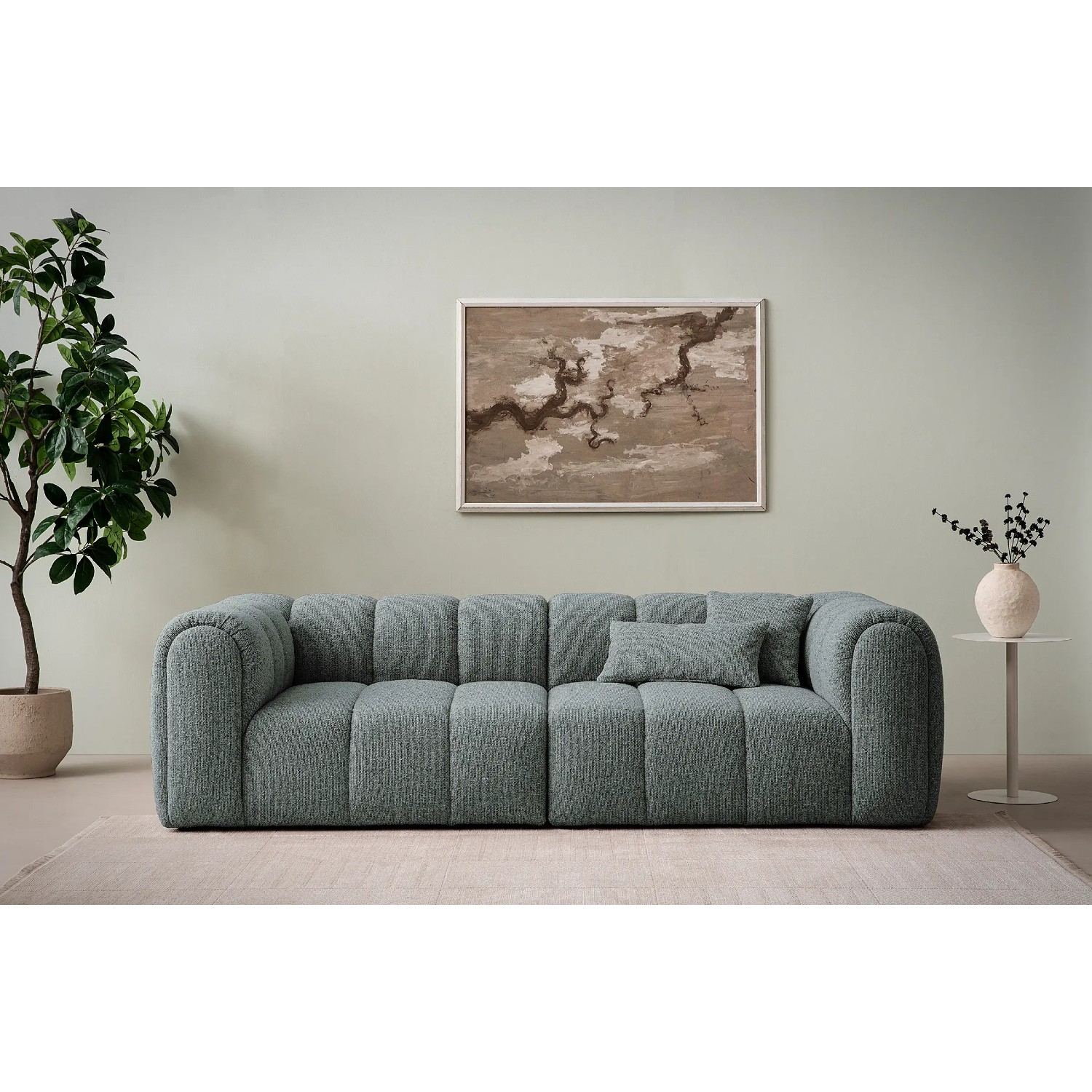 Spătarul este complet tapițat, astfel încât canapeaua poate fi plasată oriunde în încăpere – în centrul livingului, lângă o fereastră panoramică sau în spații deschise. Tapițeria de înaltă calitate este realizată cu tehnologii moderne, fiind concepută pentru a rezista în timp, fără a-și pierde textura sau aspectul plăcut.