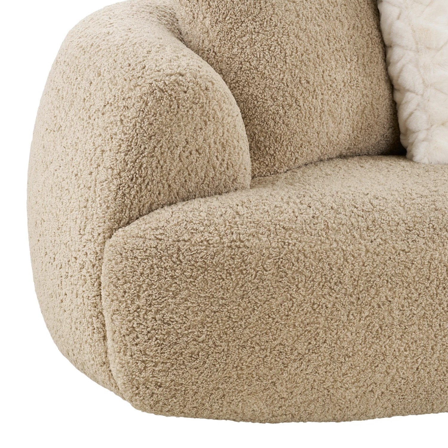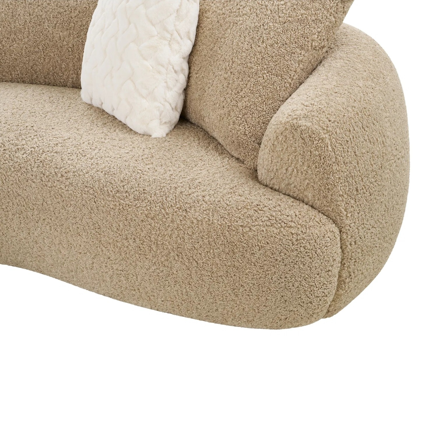 Tapițeria din material textil bouclé este plăcută la atingere, rezistentă și conferă canapelei fixe de 3 locuri maro deschis Dali un aspect elegant și actual, foarte apreciat în tendințele de design interior.