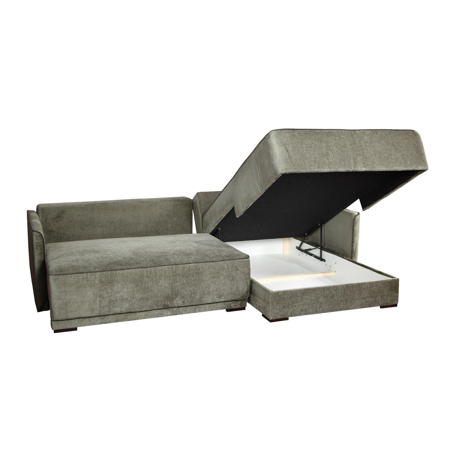 Funcția de rabatare de tip DL permite transformarea rapidă a colțarului într-un spațiu generos de dormit, cu o suprafață de 165 x 260 cm. De asemenea, cele două compartimente de depozitare integrate fac din acest colțar un mobilier practic și elegant.
