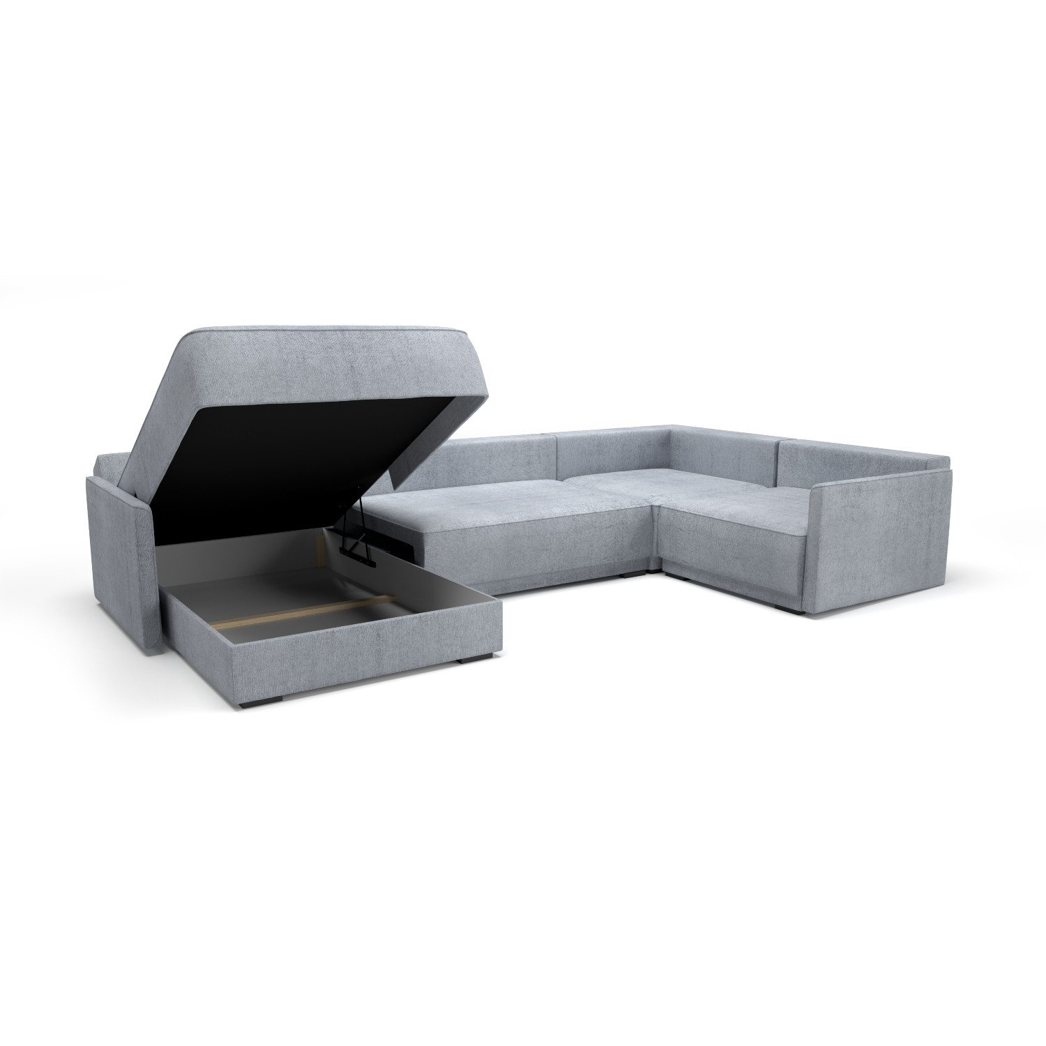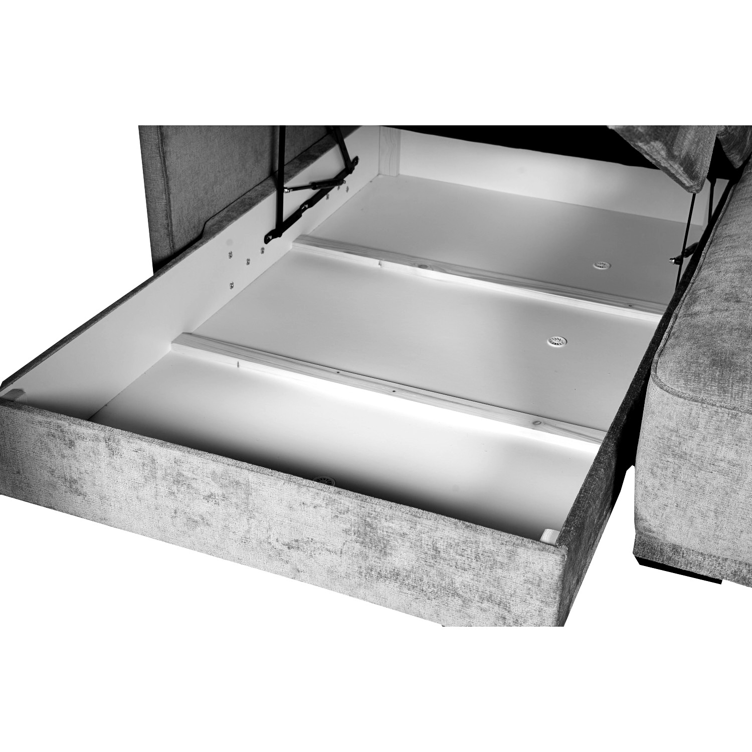 Funcția de rabatare de tip DL permite transformarea rapidă a colțarului într-un spațiu generos de dormit, cu o suprafață de 145 x 360 cm. De asemenea, cele două compartimente de depozitare integrate fac din acest colțar un mobilier practic și elegant.
