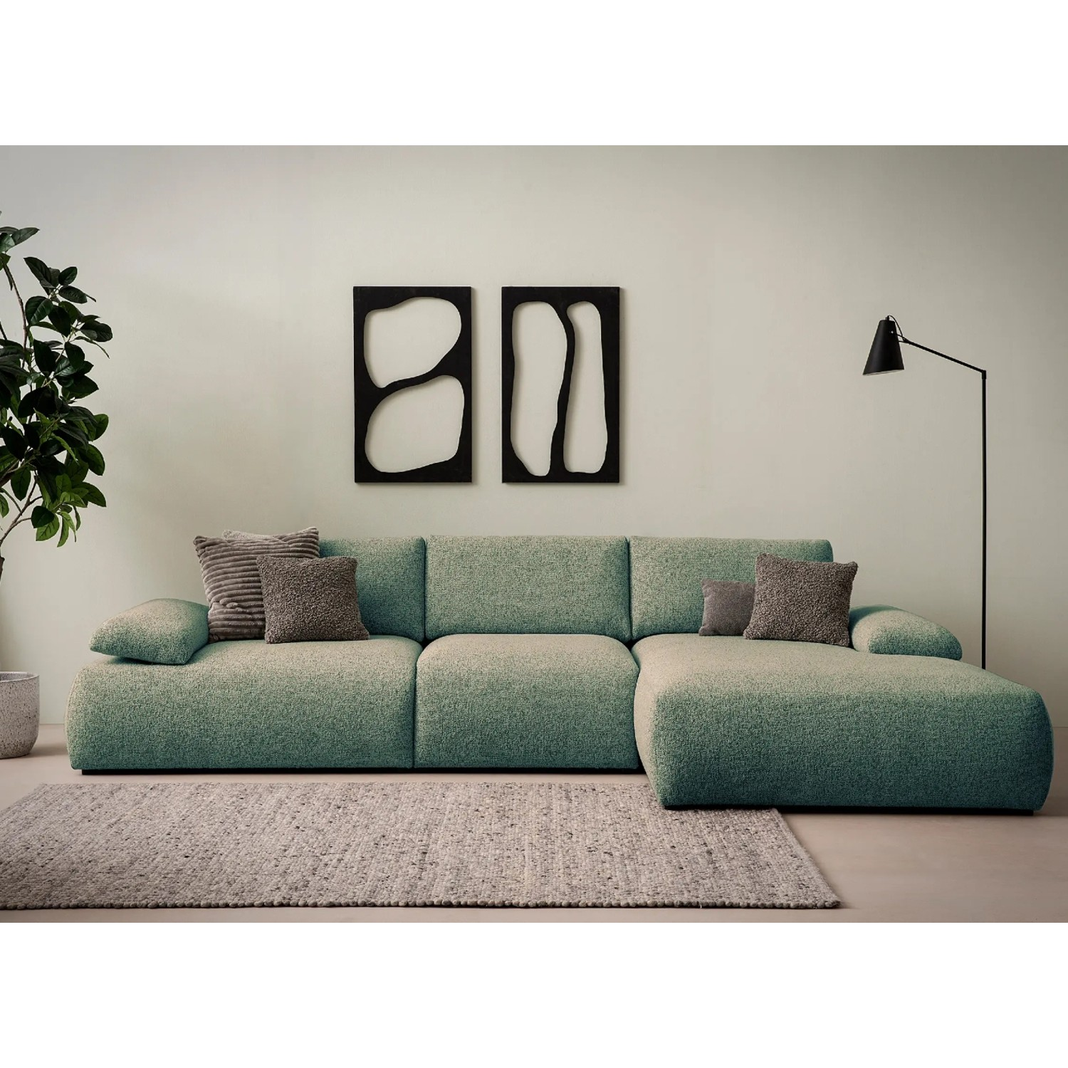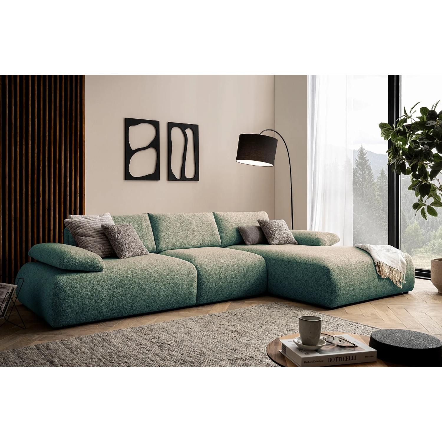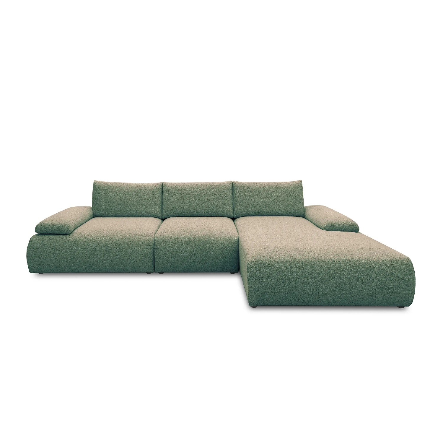 Colțarul fix dreapta L, mare, verde Orson poate fi comandat și cu sezlongul pe partea stângă.