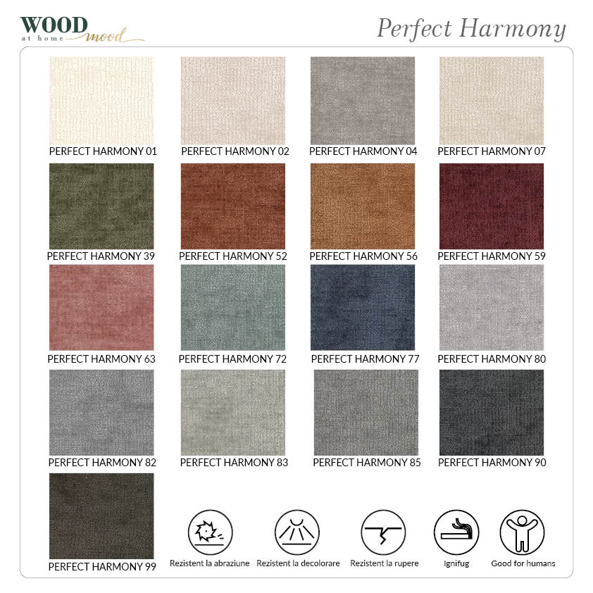 Puteți comanda produsul și cu alt tip de tapițerie și alte culori alegând dintre variantele prezentate în secțiunea de imagini sau din variantele aflate în linkul de pe imaginea de mai jos. Alegeți nuanța și notați codul de culoare la rubrica Observații din formularul de comandă online. Pentru anumite categorii de textile alese din mostrarul fizic, pe care vi-l trimitem gratuit la adresă, pretul poate suferi modificări între 3% si 8%, în funcție de textilul ales. Pentru detalii legate de comandă sau mostrar ne puteți contacta la datele de contact afișate în site și veți fi preluat de un consultant al magazinului nostru. Nuața tapițeriei din imaginea de prezentare poate fi ușor diferită față de cea din realitate a produsului, mai deschisă sau mai închisă, în funcție de expunerea la lumină a produsului în momentul fotografierii.