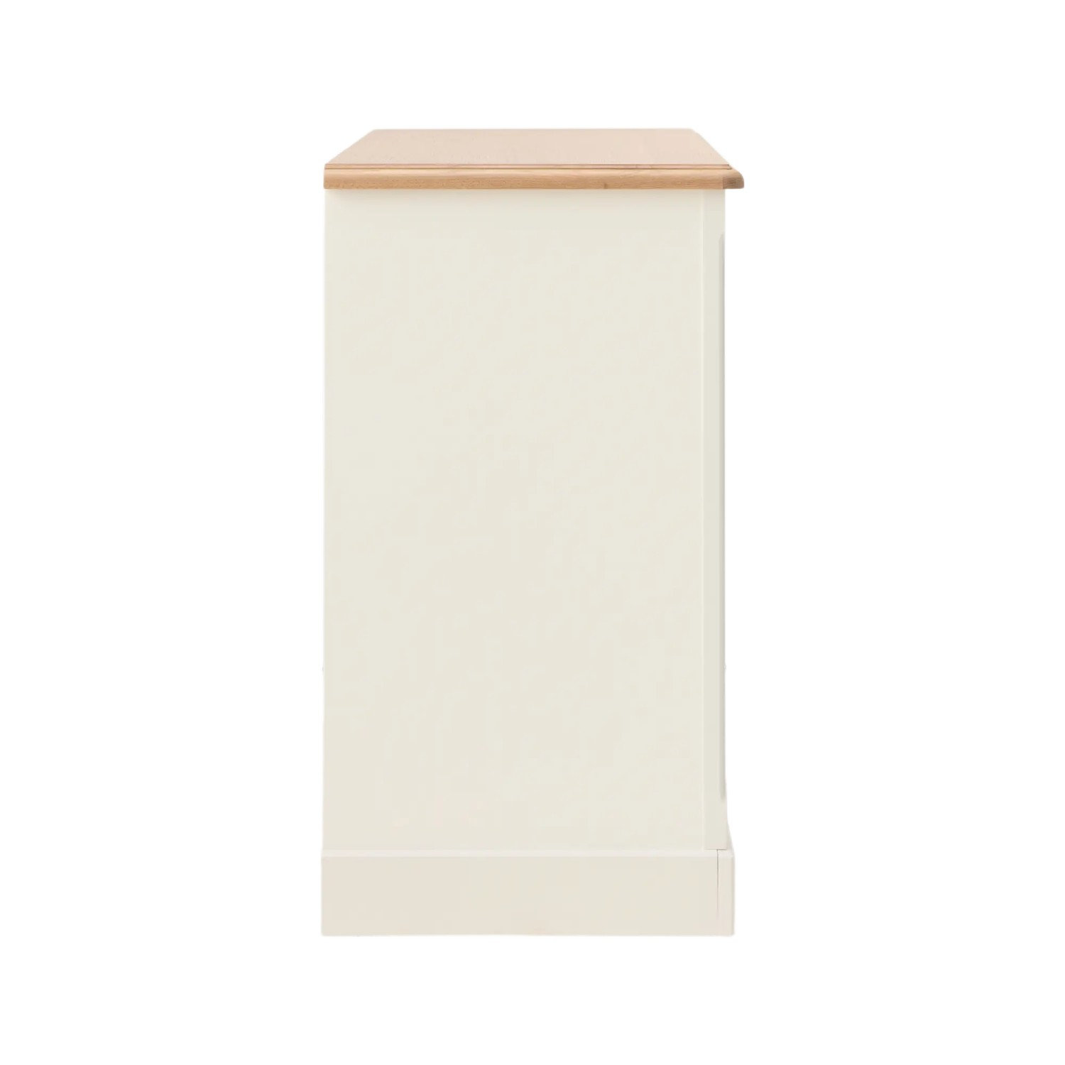 Liniile clasice de design fac comoda cu 3 sertare alb/stejar natur Provence, impreuna cu celelalte piese din gama Provence, sa nu se demodeze in timp. Albul pieselor constituie un avantaj in alegerea culorilor preferate pentru decoratiuni, dar si permite oricand schimbarea culorilor. Comoda cu 3 sertare alb/stejar natur Provence dispune de: carcasa din PAL melaminat alb; placa superioara din PAL furniruit cu stejar, cu bordura de lemn masiv; front sertar din MDF lacuit.