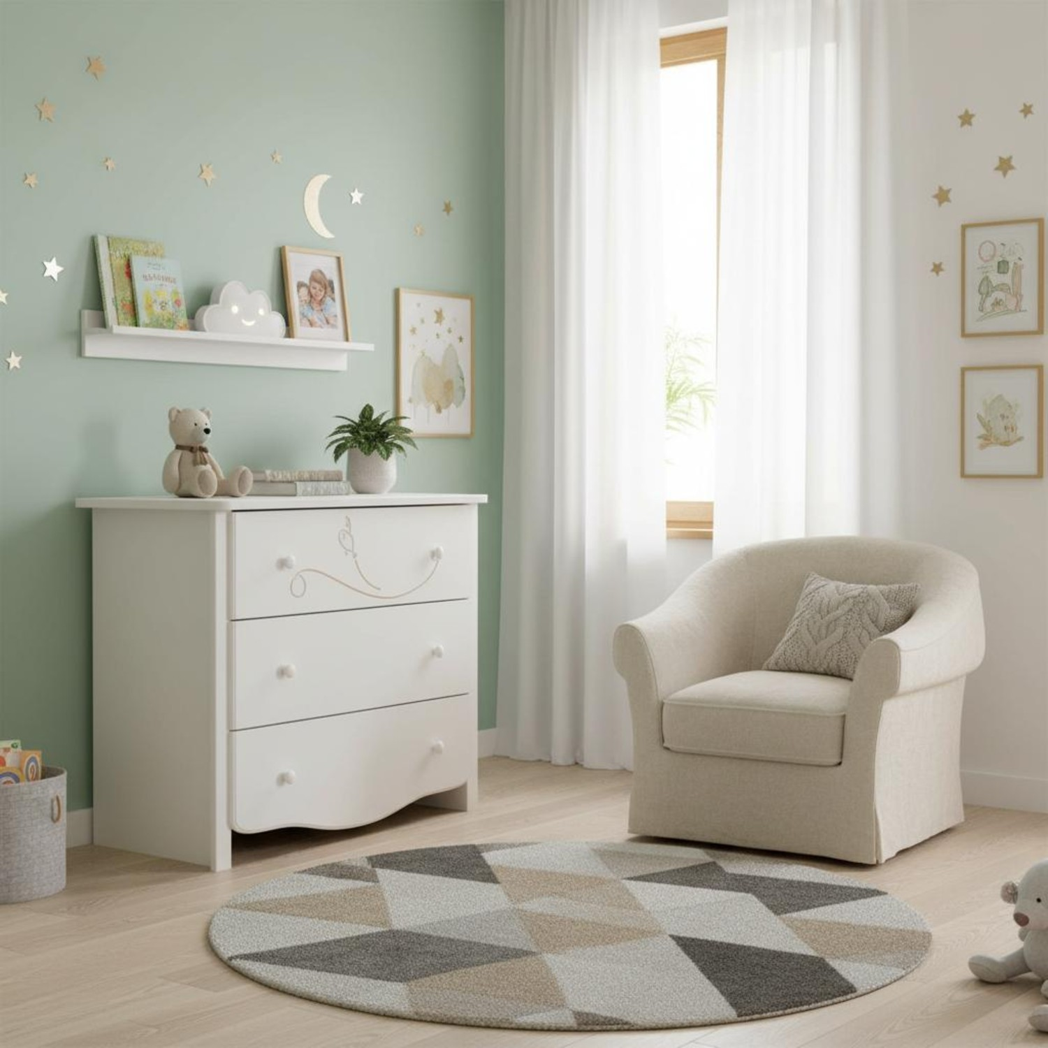 Albul lacuit se poate combina cu teme diverse, de la ursi de plus la vedete de film si orice culoare din curcubeu! Comoda cu 3 sertare alb Sweet este infrumusetata cu un accent decorativ de panglica si are margini ornamentate. Detaliile de proiectare ofera o multime de caracteristici de stocare si organizare.