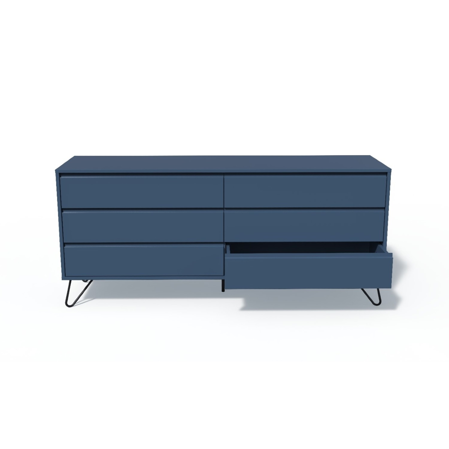Transformă-ți locuința într-un spațiu elegant, bine organizat și primitor cu comoda cu 6 sertare, albastru, Elona, un corp de mobilier modern, perfect echilibrat între design, funcționalitate și calitate. Cu un aspect minimalist și rafinat, comoda se integrează armonios atât în interioarele contemporane, cât și în cele clasice cu accente moderne.