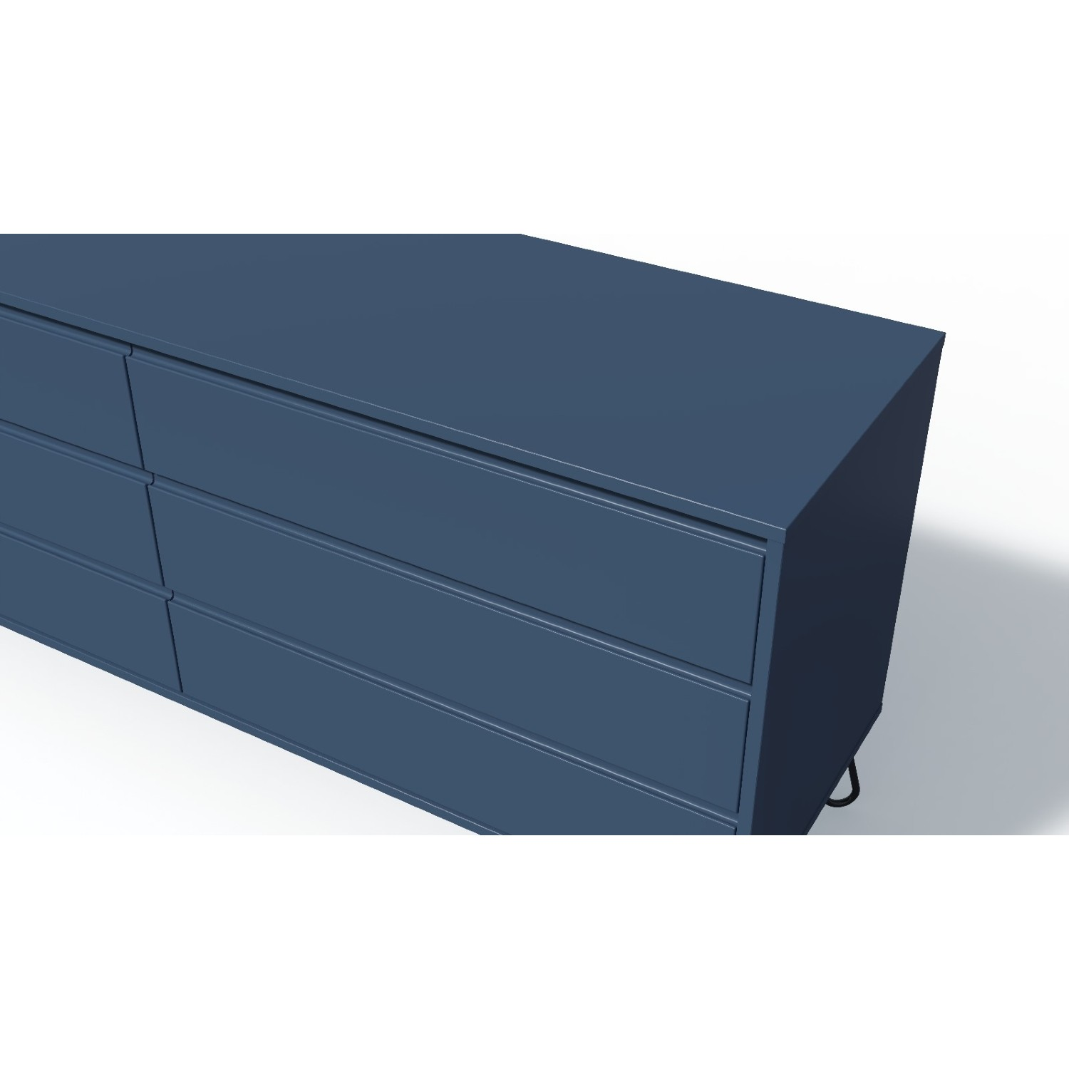 Carcasa este realizată din PAL melaminat de înaltă densitate, un material rezistent la uzură și ușor de întreținut, care asigură stabilitate și durabilitate în timp. Fronturile sertarelor sunt fabricate din MDF finisat albastru, mat, conferind un aspect sofisticat și plăcut la atingere. Această combinație de materiale oferă un echilibru perfect între estetică și funcționalitate.