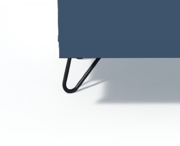 Designul este completat de picioarele metalice elegante, vopsite negru mat, care adaugă un aer modern și industrial, asigurând totodată o susținere solidă și o distanță optimă față de podea pentru o curățare ușoară dedesubt.