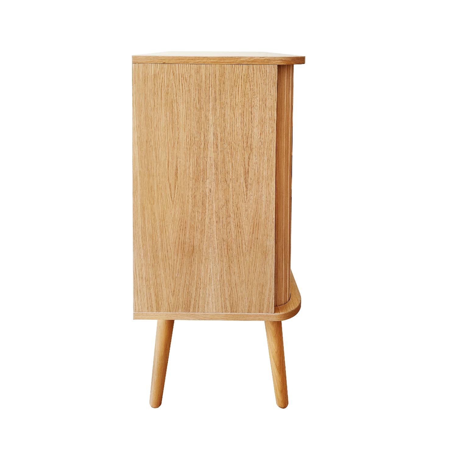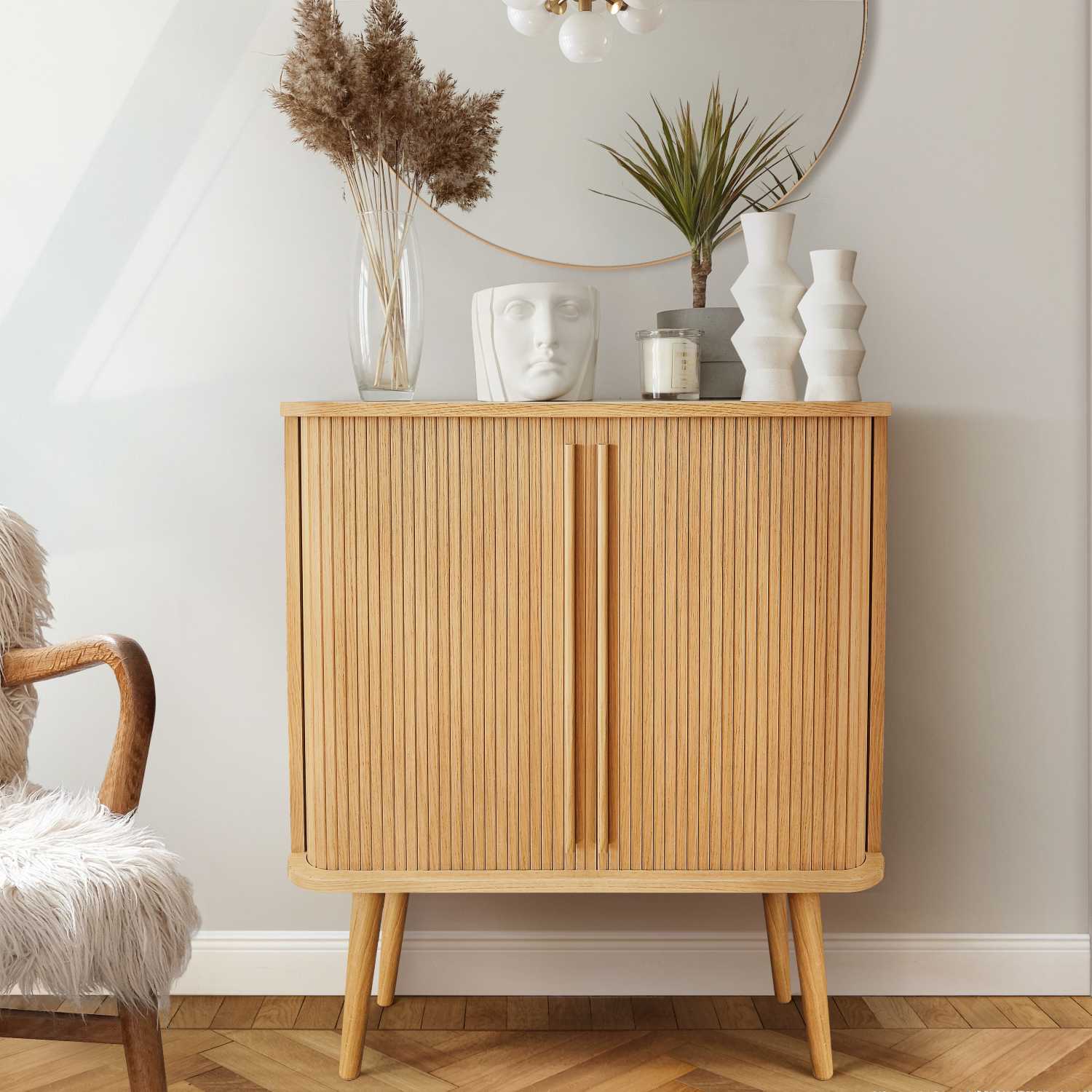 Iti doresti o comoda cu design atractiv si elegant? Comoda inalta cu 2 usi culisante stejar Rove este ceea ce cauti. Potrivita pentru un living modern, in care mobilierul din lemn natur creeaza o atmosfera calma, comoda Rove se remarca prin executia si finisajele de calitate. Atractia sa o constituie cele doua usi culisante care se deschid total si care sunt frezate pentru un plus de design. Comoda inalta cu 2 usi culisante stejar Rove este realizata din carcasa de PAL furniruit cu stejar natur, cu picioare si manere la usi realizate din lemn masiv de stejar. Spatiul de depozitare pe care il ofera va permite sa va aranjati obiectele de care aveti nevoie sa va fie la indemana. Fronturile usilor sunt frezate si fac ca aceasta comoda sa arate intr-un fel cu totul special.