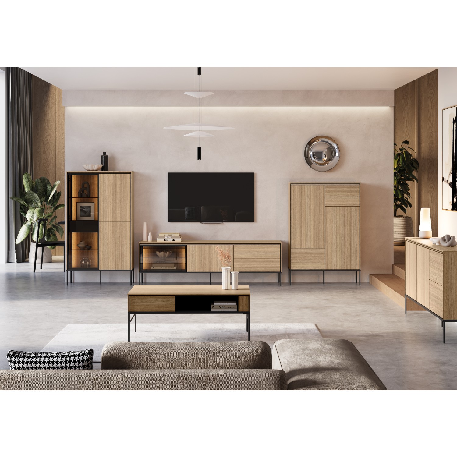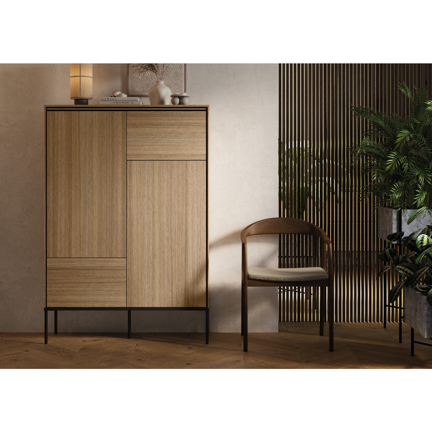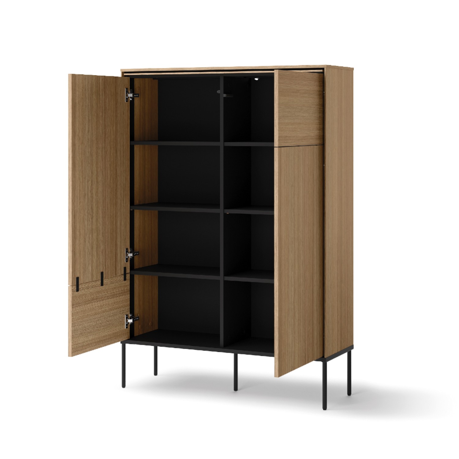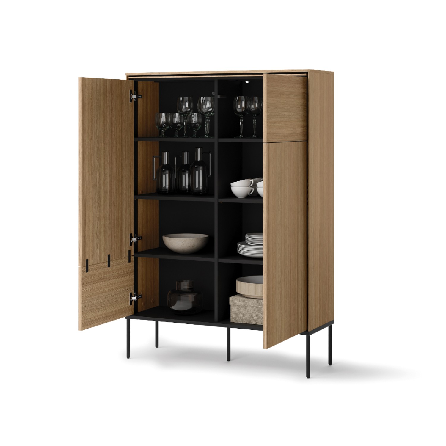 Comoda inalta cu 2 usi stejar/negru Visso va incanta de la prima vedere prin designul sau modern si va permite sa va pastrati spatiul confortabil si ordonat. Comoda inalta cu 2 usi stejar/negru Visso se remarcă prin materiale atent selectate și un finisaj stejar, ceea ce o recomanda pentru un decor modern. Construcția sa stabilă asigură durabilitate ani de zile, iar prin aspectul sau se va potrivi într-o varietate de aranjamente, de la minimalist la clasic. Oferind mult spațiu de depozitare, comoda inalta cu 2 usi stejar/negru Visso combină estetica cu funcționalitatea. Indiferent de stilul tău preferat, acest corp de mobilier va fi o completare perfectă pentru sufrageria ta. Creați un spațiu confortabil utilizand comoda inalta cu 2 usi stejar/negru Visso care va adăuga și un caracter unic incaperii.