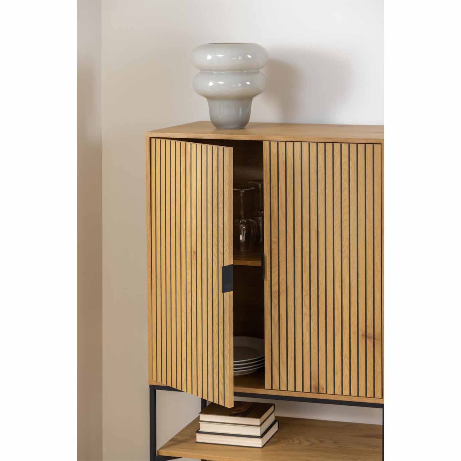 Iti doresti un interior decorat in stil minimalist sau ai un spatiu mic in care doresti mobilier care sa te ajute cu depozitarea? Atunci alege comoda inalta cu 2 usi si 2 polite stejar salbatic Jaipur care arata impecabil. Cu aspectul sau minimalist, comoda inalta cu 2 usi si 2 polite stejar salbatic Jaipur este mai mult decat un loc pentru lucrurile tale, ea poate da tonul decorului din camera de zi sau sufragerie. Cu finisajul sau de stejar salbatic in combinatie cu baza de otel vopsit negru imprima personalitate si este usor de asortat cu decoratiuni de diferite culori. Usile cu fronturi lamelate prevazute cu manere elegante din metal sunt nota specifica a acestui bufet. Liniile verticale accentueaza supletea acestui corp de mobilier. Comoda inalta cu 2 usi si 2 polite stejar salbatic Jaipur este realizata din MDF melaminat cu decor de stejar salbatic, un material de inalta calitate folosit in productia de mobilier, rezistent si usor de intretinut. Politele exterioare asigura spatiu in plus pentru decoratiuni sau pentru carti ori alte obiecte indragite pe care doriti sa le expuneti. Sau pot fi folosite chiar pentru asezarea unor cutii decorative care adapostesc o sumedenie de maruntisuri. Alege comoda inalta cu 2 usi si 2 polite stejar salbatic Jaipur daca vrei sa imprimi personalitate locuintei tale!