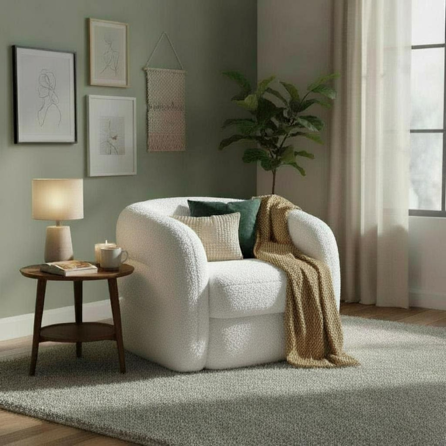 Dimensiuni:Latime: 97 cm Adancime: 88 cmAdancime sezut: 61 cmInaltime: 74 cmInaltime sezut: 43 cmGreutate maxima suportata: 100 kgNumar colete: 1 (98 x 96 x 76 cm - 22 kg)Greutate: 21 kgMaterial: fotoliu cu tapiterie din material textil, umplut cu spuma poliuretanica, picior rotativ din lemn Culoare: alb/negru