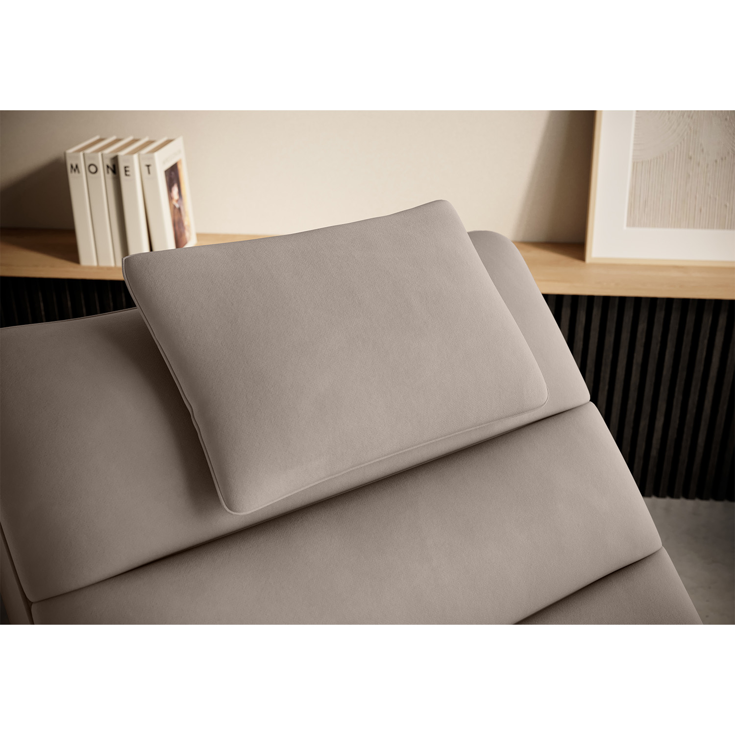 Fotoliul sezlong cu textil bej Taco este o propunere atent gandita care pune confortul pe primul loc. Dimensiunile sale permit asezarea cu usurinta intr-o camera mica de oaspeti sau intr-o garsoniera pentru a obtine un spatiu elegant si confortabil de odihna. Sezlongul tapitat cu textil bej Taco este realizat din materiale de calitate, astfel ca umplutura cu spuma de mobilier HR foarte elastica se remarca prin flexibilitate. Datorita unei structuri speciale, acest tip de spuma este rezistent la deformare si intindere, astfel incat fotoliul sezlong cu textil bej Taco isi va gasi mult timp loc in casa ta!