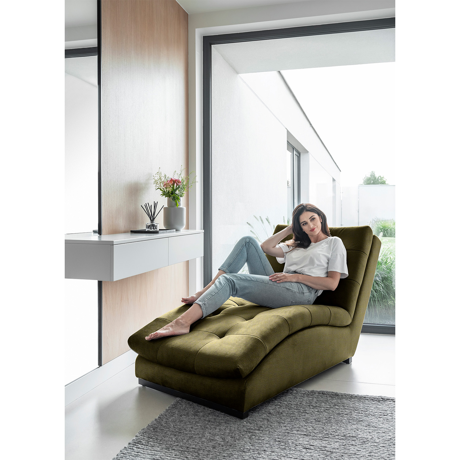 Iti doresti un loc special pentru a savura cafeaua de dimineata, sa te relaxezi cu o carte buna sau chiar sa te retragi pentru un pui de somn in mijlocul zilei? Sezlongul tapitat cu textil verde kaki Doro este alegerea cea mai buna, datorita designului sau modern si elegant. Sezutul curbat si spatarul permit o pozitie care se pliaza pe formele corpului, asigurand o sedere relaxata. Fotoliul sezlong cu textil verde kaki Doro poate fi folosit ca mobilier de sine statator deoarece are spatele tapitat, deci arata frumos din toate laturile. Sezlongul pentru living cu textil verde kaki Doro este realizat pe structura din lemn si detine umplutura cu spuma HR extrem de flexibila, de inalta calitate, care ofera suport perfect pentru spate. Spuma HR, datorita structurii sale celulare unice, asigura o rezistenta adecvata, iar flexibilitatea sporita o face confortabila. Textilul de catifea este placut la atingere. Fotoliul sezlong tapitat cu textil verde kaki Doro este disponibil in multe culori si il puteti integra cu usurinta in diverse interioare, fiind usor de asortat.