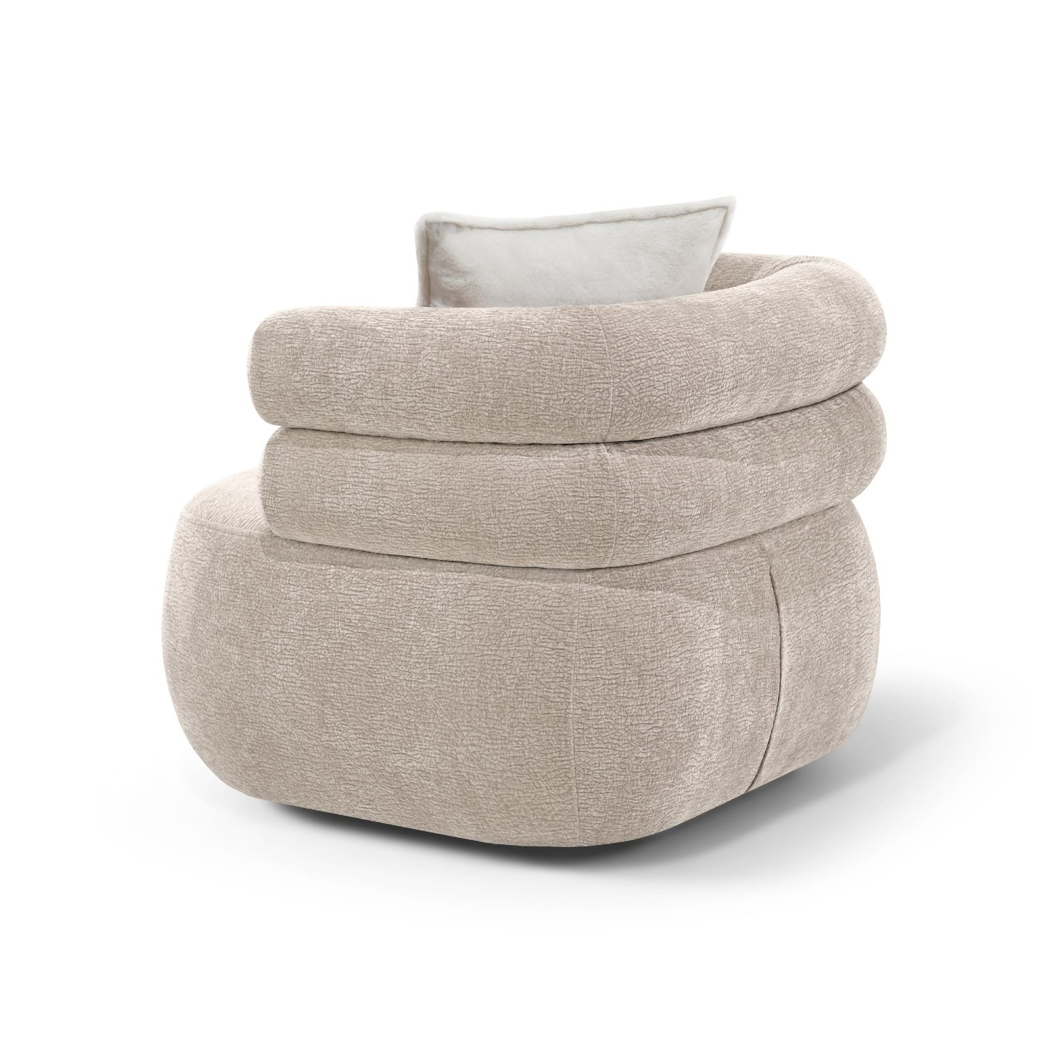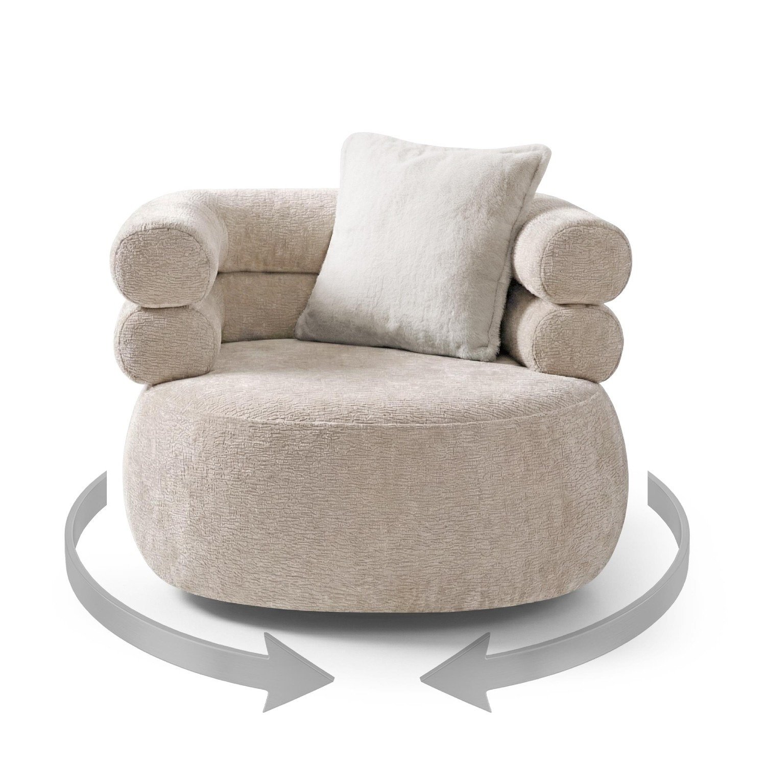 Fotoliul tapițat rotativ crem Nela se livrează însoțit de o pernă decorativă care completează armonios designul și oferă un plus de confort.
