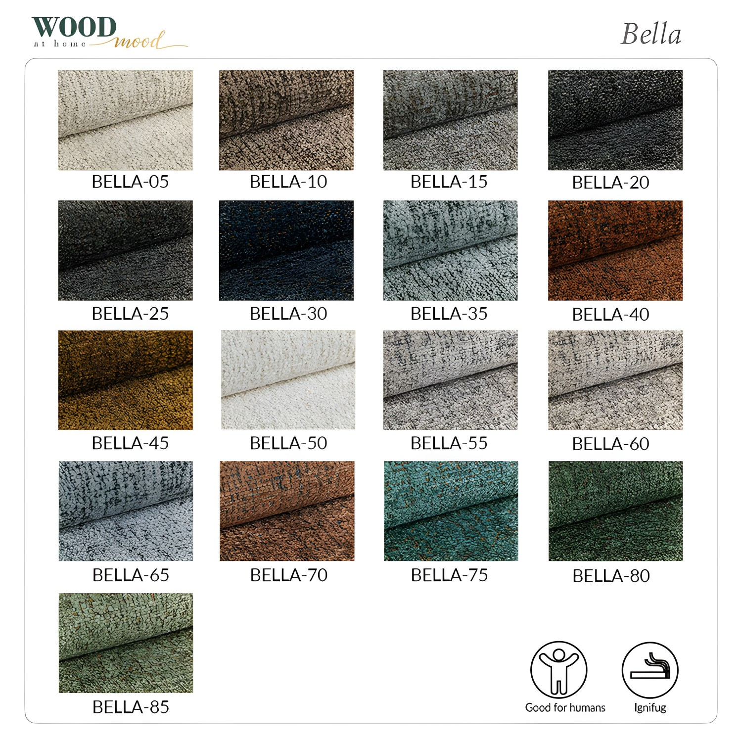 Tapițeria din material textil chenille plăcut la atingere (BELLA 15) îmbracă integral fotoliul, oferind un aspect elegant și primitor.