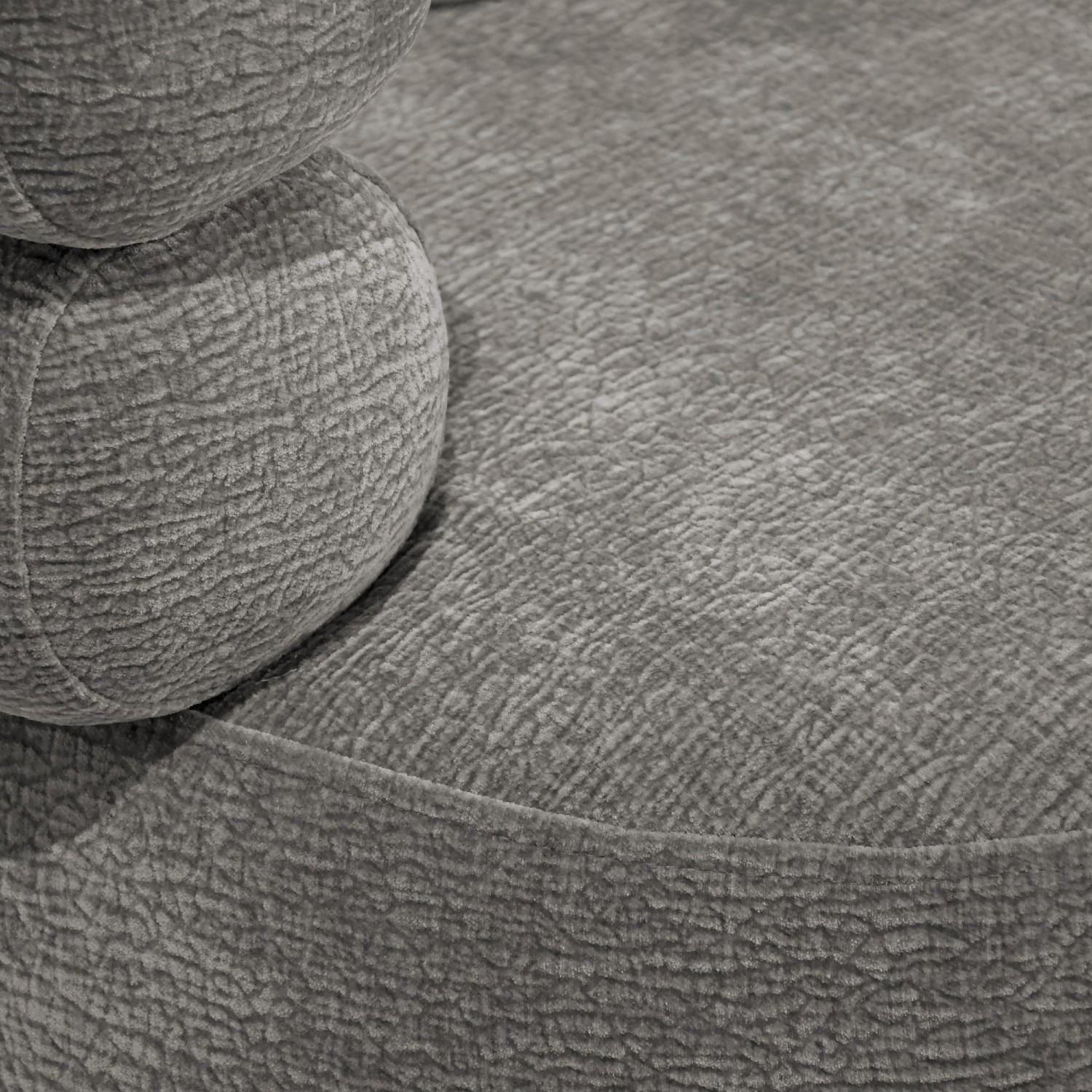 Fotoliul tapițat rotativ gri Nela este îmbrăcat într-un textil chenille premium (Dress Me 03), plăcut la atingere și cu un aspect sofisticat, caracterizat printr-o rezistență excepțională la uzură, având un test Martindale de peste 100.000 de cicluri, ceea ce garantează durabilitate îndelungată și performanță superioară chiar și în condiții de utilizare intensă.