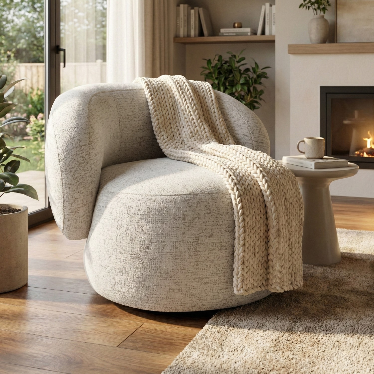 Datorită bazei pivotante, acest fotoliu rotativ pentru living sau birou permite rotirea ușoară, fiind ideal atât pentru relaxare, cât și pentru activități zilnice precum cititul, lucrul la laptop sau conversațiile în familie. Designul său versatil îl face potrivit pentru interioare moderne, minimaliste sau scandinave.
