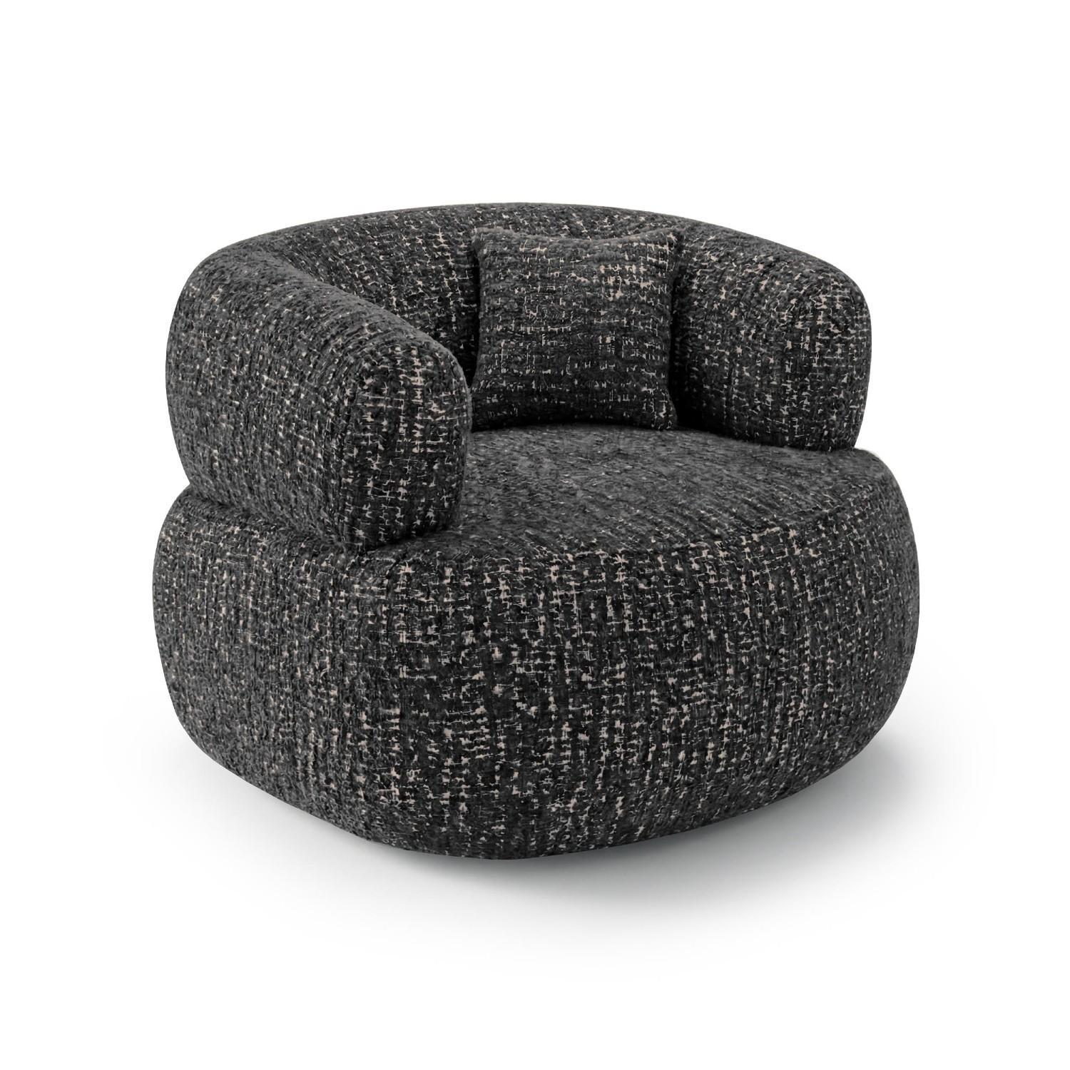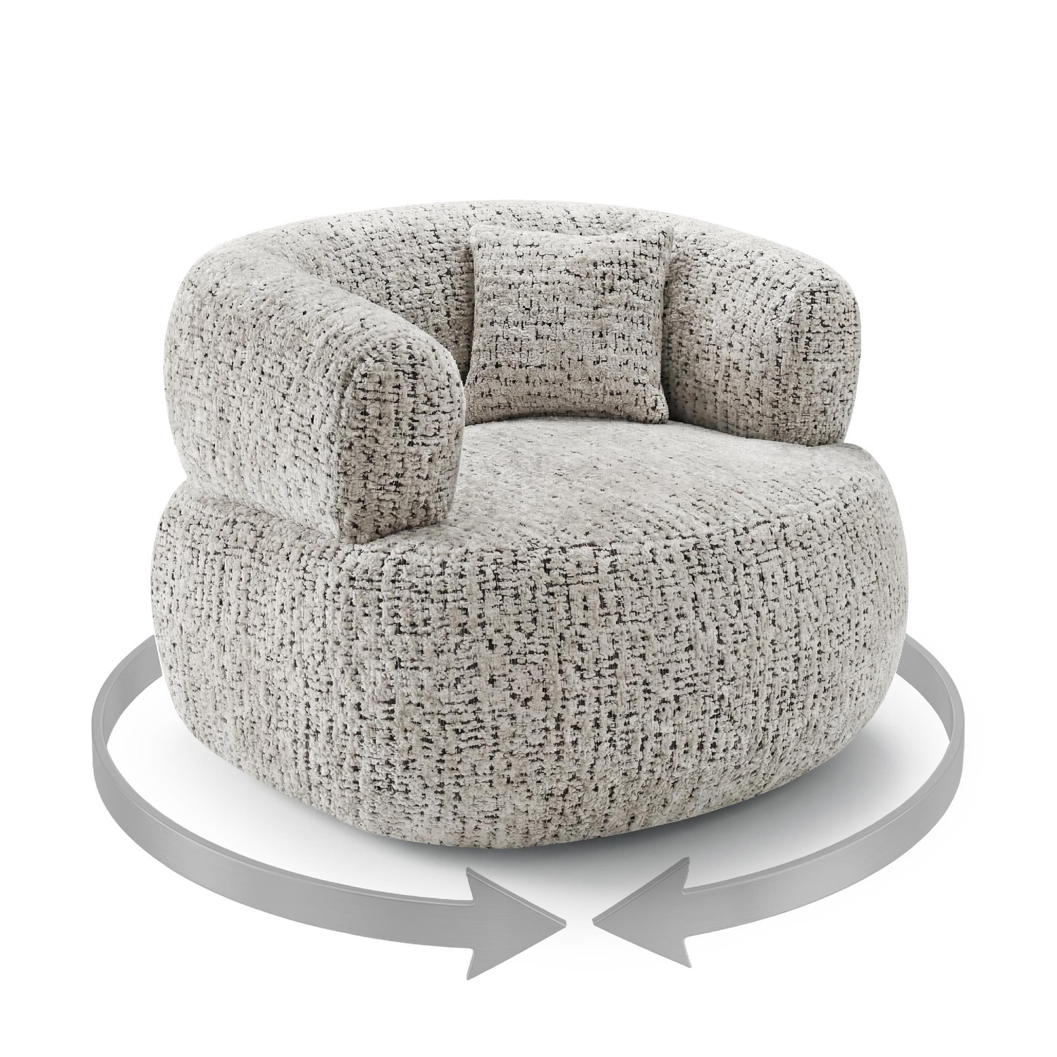 Forma rotunjită și liniile fluide transformă acest fotoliu rotativ cu design modern într-o piesă de accent potrivită pentru interioare minimaliste, scandinave sau contemporane. Tapițeria din material textil plăcut la atingere (RIMBA 11) îmbracă integral fotoliul, oferind un plus de confort, căldură și un aspect elegant, potrivit pentru orice interior modern. În plus, perna decorativă inclusă completează estetica produsului și oferă un plus de confort.