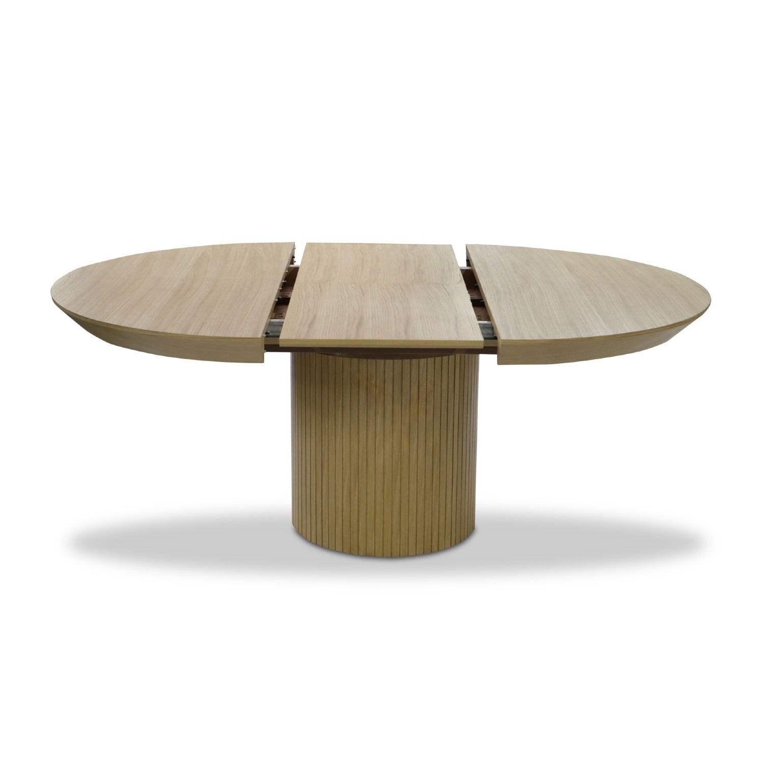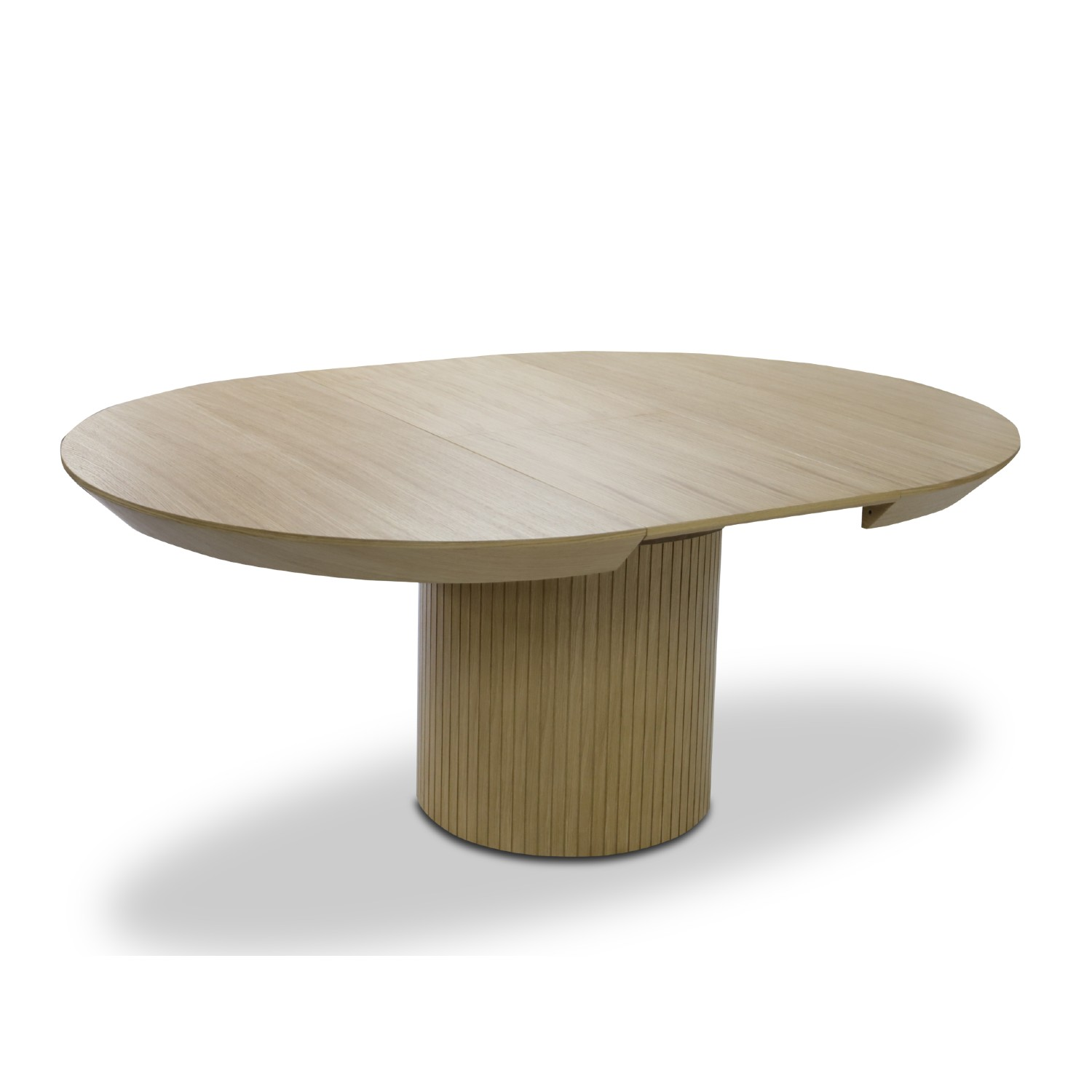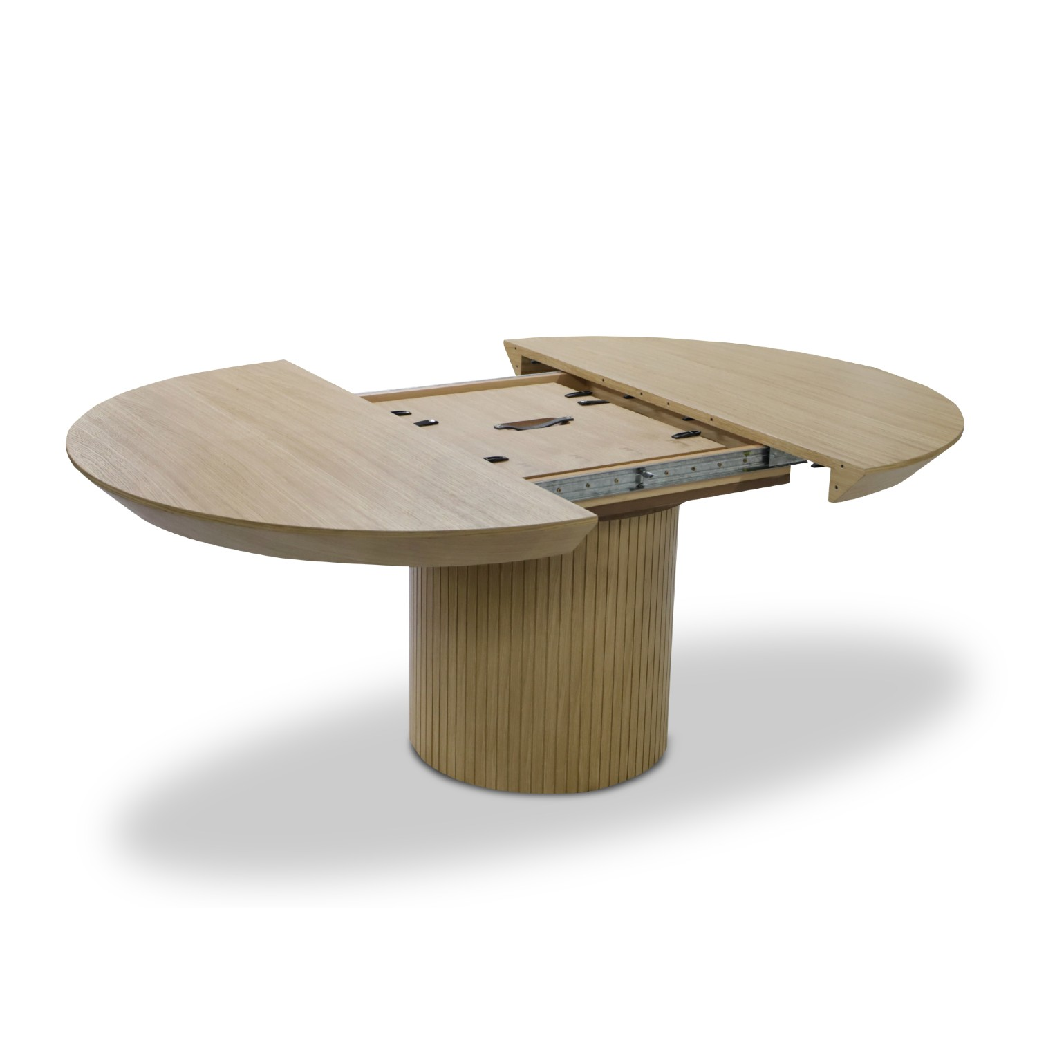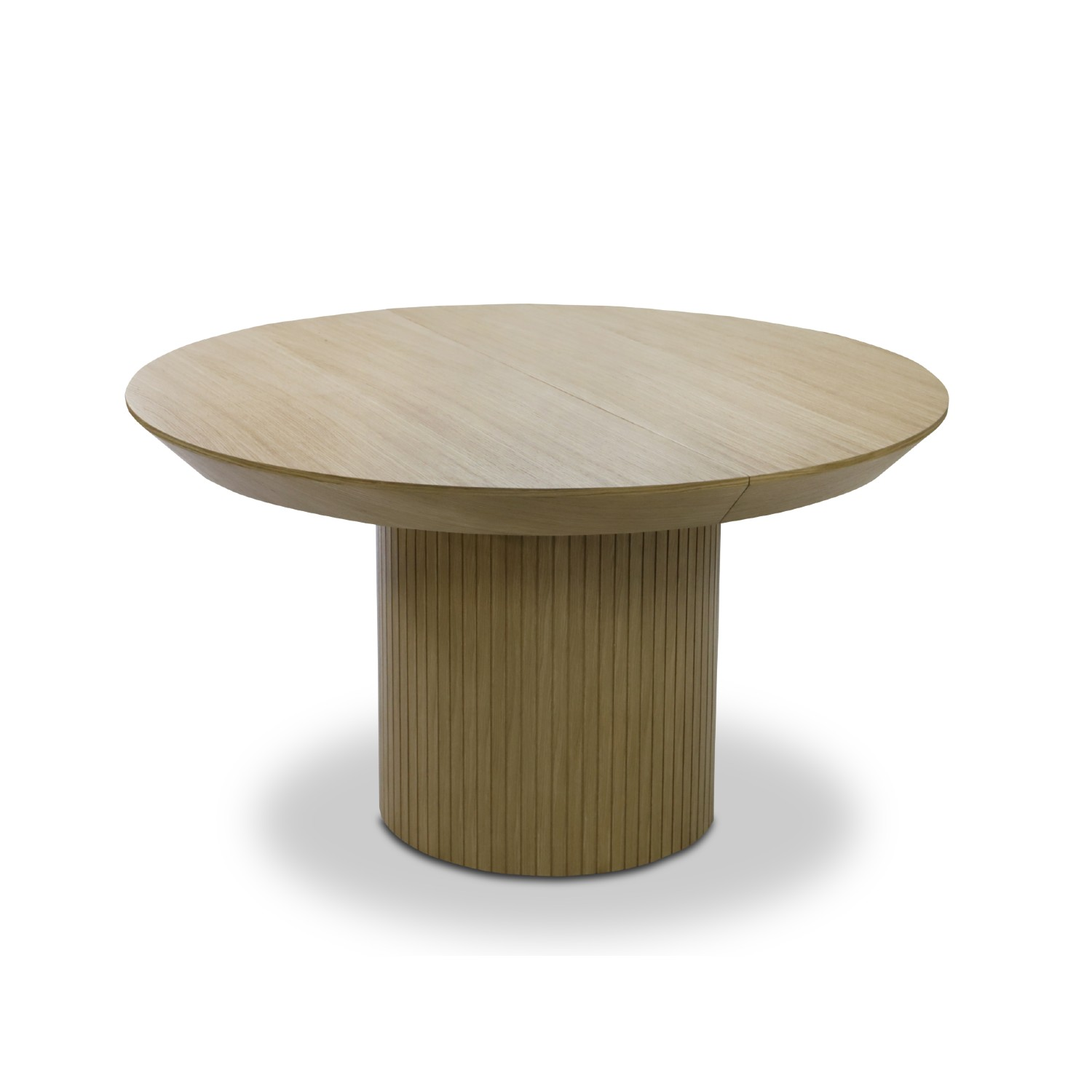 Sistemul de glisare modern face ca instalarea alonjei sa fie o sarcina foarte simpla. Masa rotunda extensibila 130/180 cm stejar Rond detine placa superioara furniruita cu furnir natural de stejar si picior rotund canelat cu furnir de stejar. Masa rotunda extensibila 130/180 cm stejar Rond este solida si rezistenta in timp datorita bazei canelate care are si un rol estetic. Masa se intretine foarte usor prin stergere cu o laveta moale.