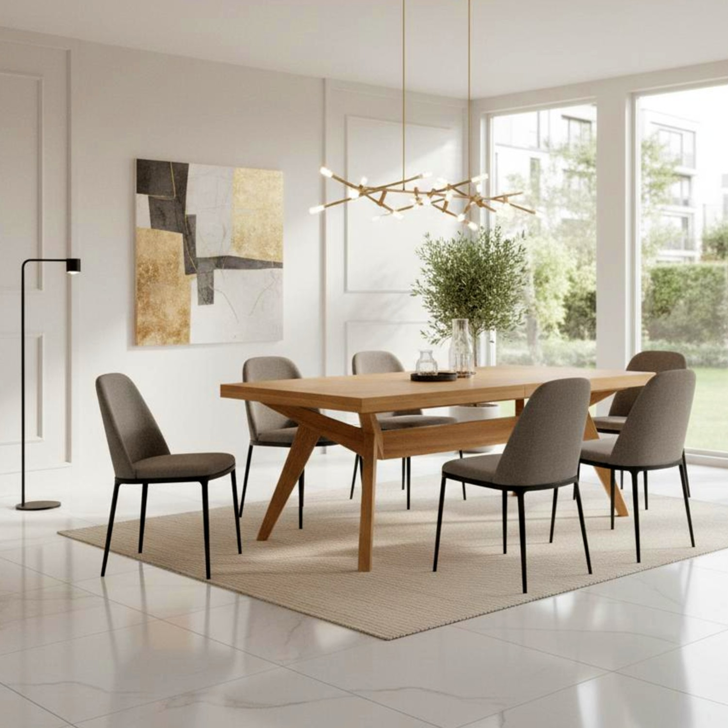Masa extensibila 200/300 cm stejar Borneo - o masa moderna cu aspect deosebit, in special datorita formei picioarelor. Este o masa grandioasa datorita dimensiunilor sale, dar care poate fi usor accesorizata gratie culorii naturale a stejarului. Masa extensibila 200/300 cm stejar Borneo poate acomoda 8 persoane in varianta fixa si 12 persoane in varianta extinsa.