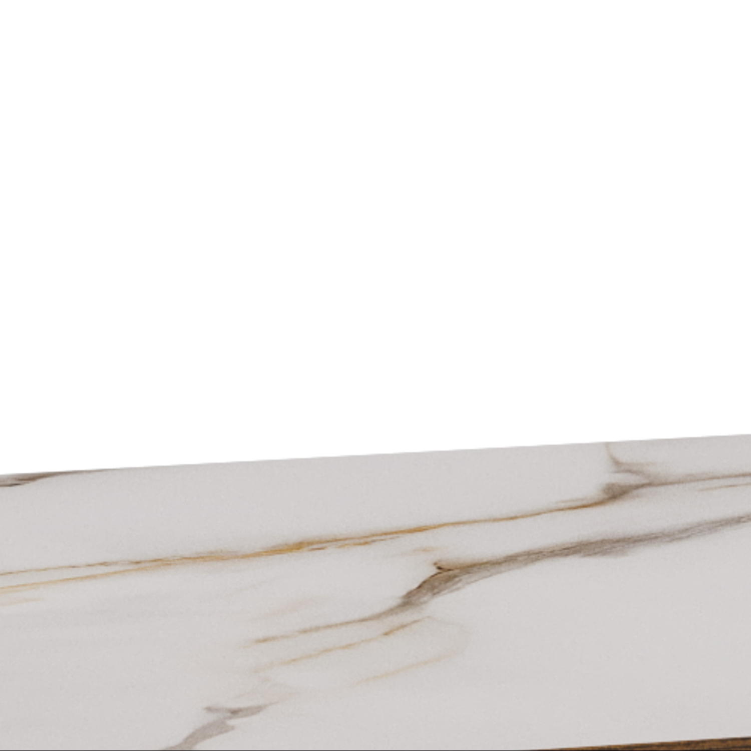 ✔️ Blat rotund din ceramică premium, cu vene subtile și finisaj lucios, ușor de curățat și rezistent la zgârieturi, pete și căldură
