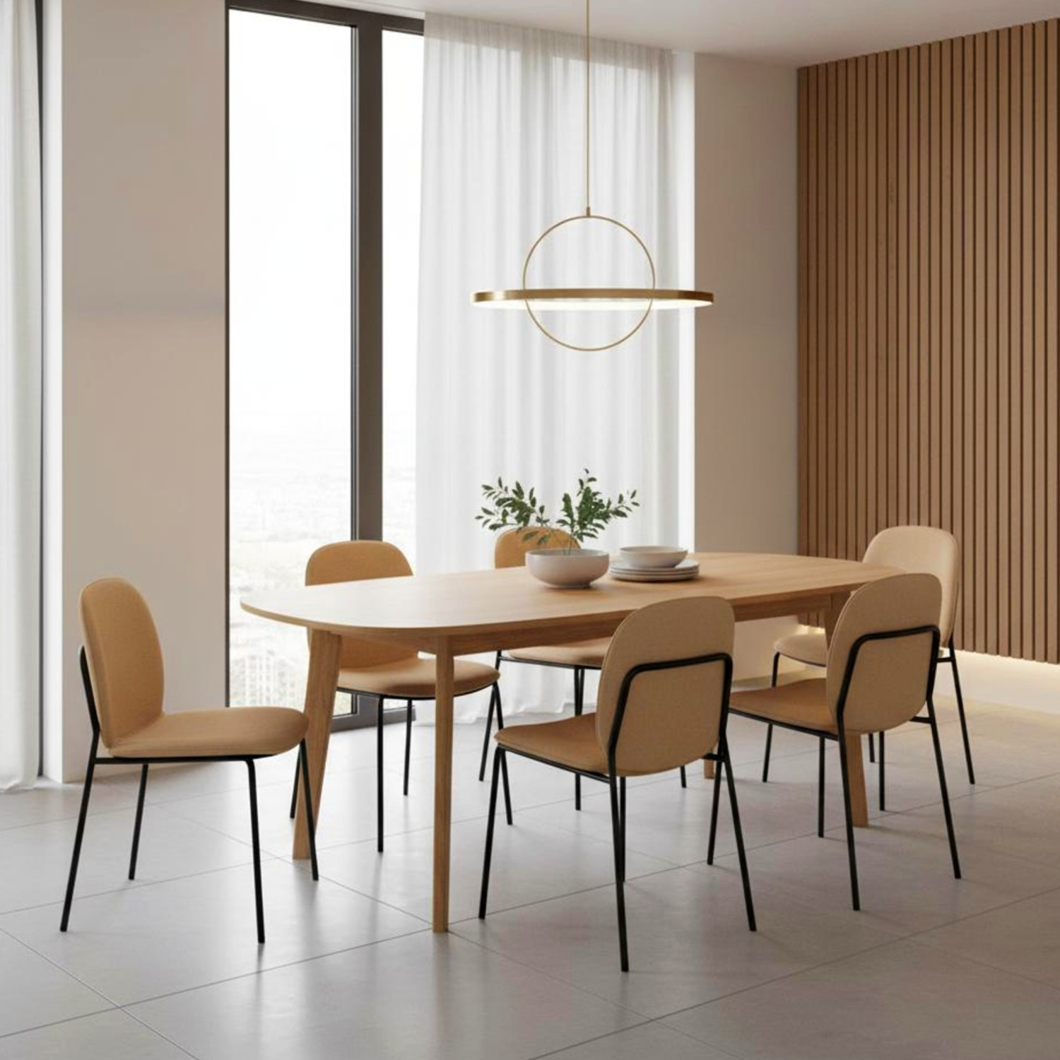 Masa ovala extensibila 160/200 cm natur Naiss este o masa cu design tipic scandinv, care pastreaza balanta intre estetic si functionalitate. Forma conica si nuantele deschise de lemn specifice designului nordic dau eleganta acestei mese usor de adaptat spatiilor mici, fara sa incarce camera. Datorita extensiei de 40 de cm, Masa ovala extensibila 160/200 cm natur Naiss se prelungeste pana la o lungime de 200 cm si poate acomoda confortabil 8 persoane la masa, astfel ca sefvirea unei cine cu prietenii sau familia extinsa nu mai este o proglema. Pentru mesele de zi cu zi masa se poate folosi fara extenie ocupand mai putin spatiu in casa. Daca dispuneti de un spatiu deschis intre camera de zi si sufragerie, va recomandam masa ovala extensibila 160/200 cm natur Naiss pentru crearea unui ambient unitar si armonios.