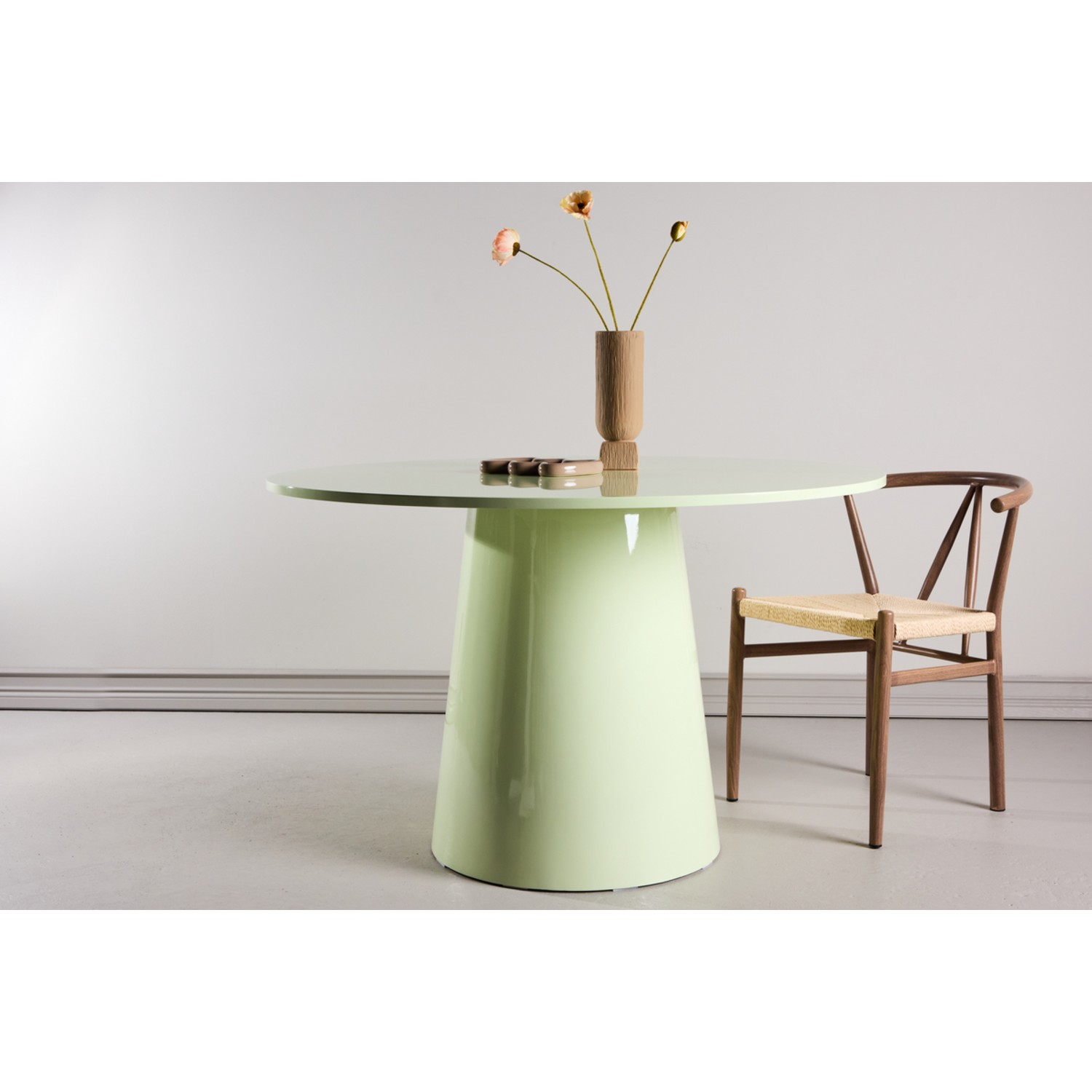 Lasă masa rotunda 120 cm verde deschis Lanzo să devină inima casei tale, locul unde frumusețea designului și armonia culorilor creează o atmosferă caldă, modernă și primitoare.