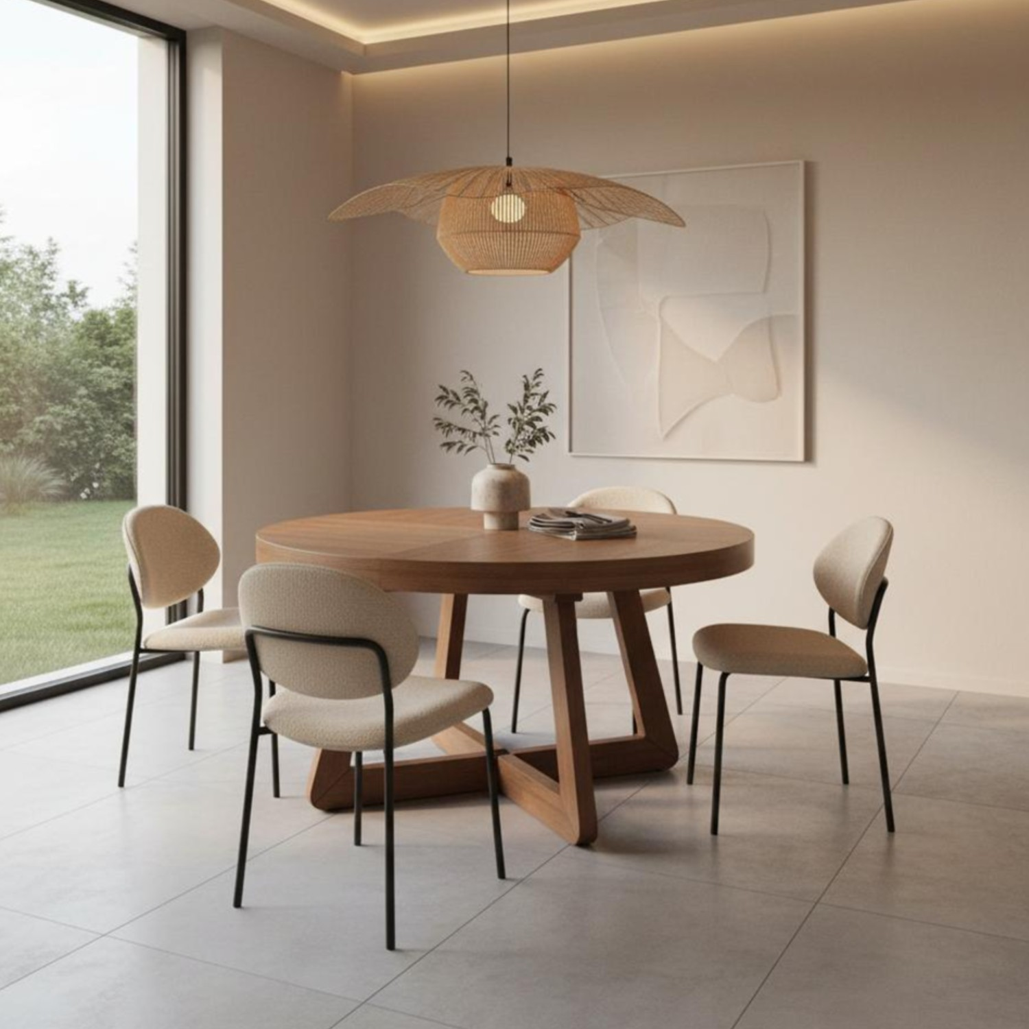 Masa rotunda extensibila 130/230 cm nuc Anton II este o masa foarte bine proportionata si functionala, realizata cu materiale de calitate si cu cu finisaje pe masura. Lemnul de stejar vopsit in culoare de nuc creeaza o ambianta eleganta. Diametrul cu dimensiuni generoase de 130 cm o face foarte potrivita in sufragerii cochete. In varianta fixa masa rotunda extensibila 130/230 cm nuc Anton II poate acomoda confortabil 4 persoane, iar alungita cu cele doua extensii de 50 cm fiecare permite asezarea la masa a 8 persoane, devenind un loc agreabil de servire a prietenilor sau a familiei extinse. Sistemul de deschidere pe sine se realizeaza sincron, facand ca extinderea mesei sa se realizeze fara efort. Amplasarea celor doua alonje sub blatul mesei constituie un avantaj, deoarece nu sunteti nevoiti sa le gasiti un spatiu de depozitare prin casa. Masa rotunda extensibila 130/230 cm nuc Anton II este solida si rezistenta in timp datorita picioarelor realizate din lemn masiv de stejar. Masa se intretine foarte usor prin stergere cu o laveta moale.