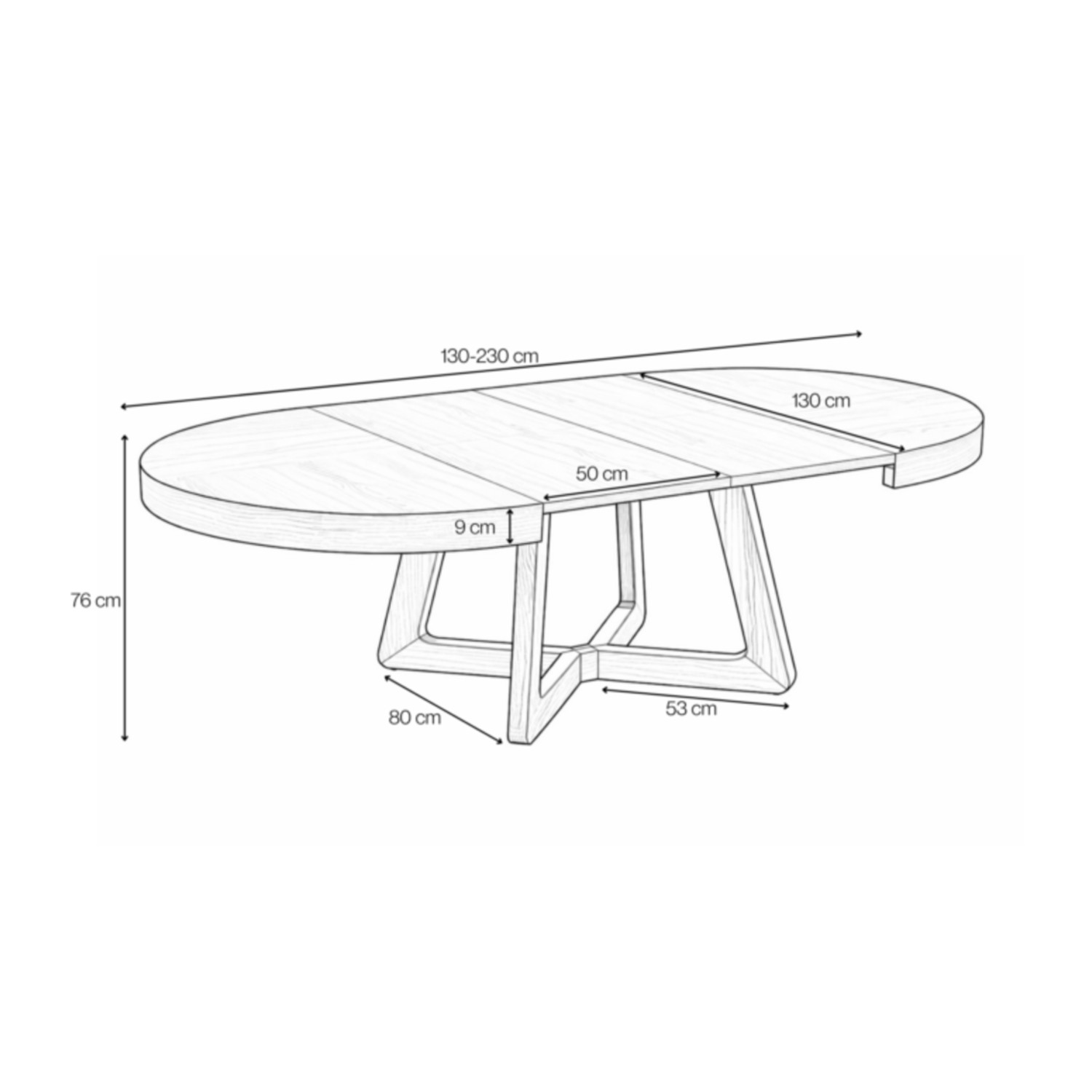 ✔️ Extensibilă: de la 130 cm la 230 cm, ideală pentru 4–8 persoane