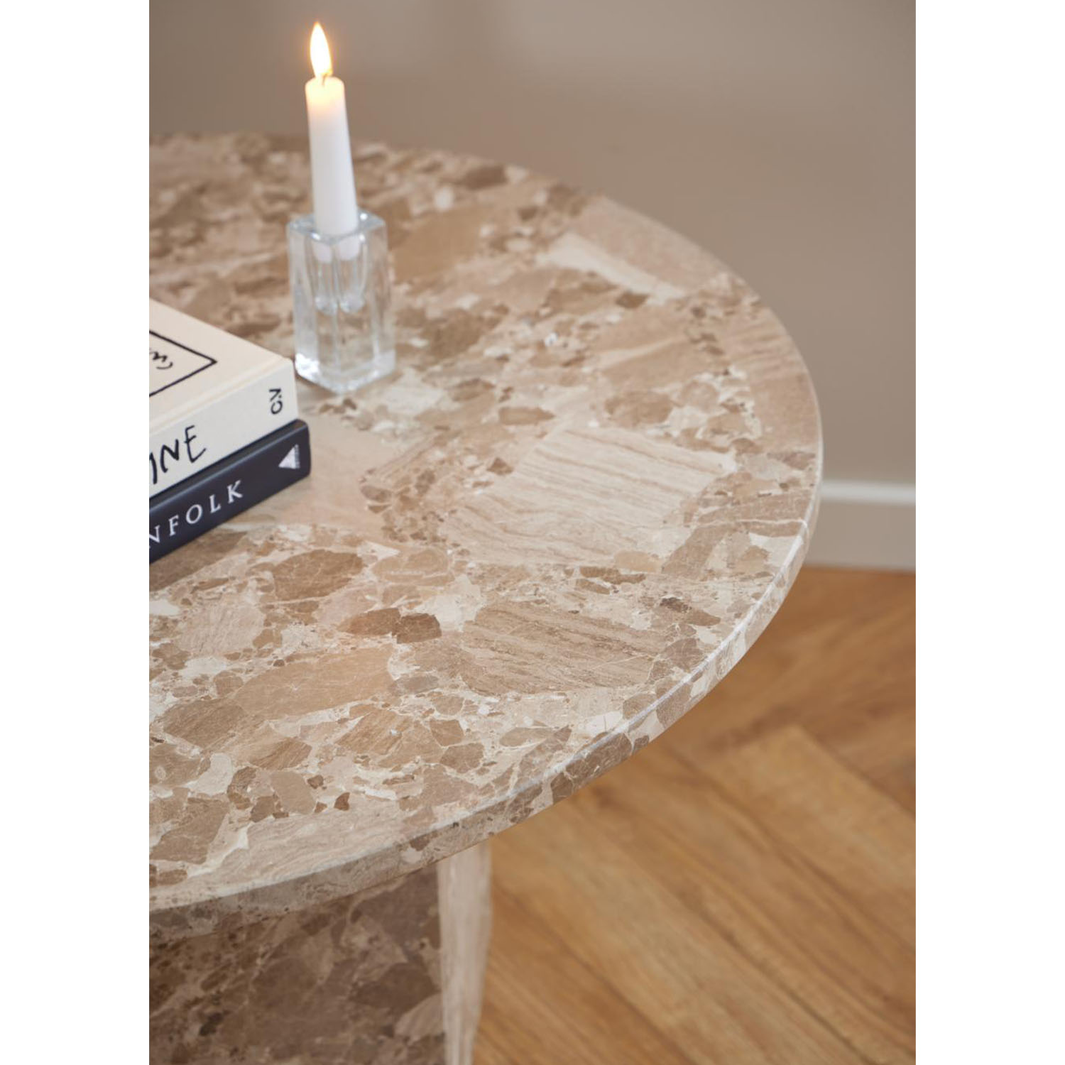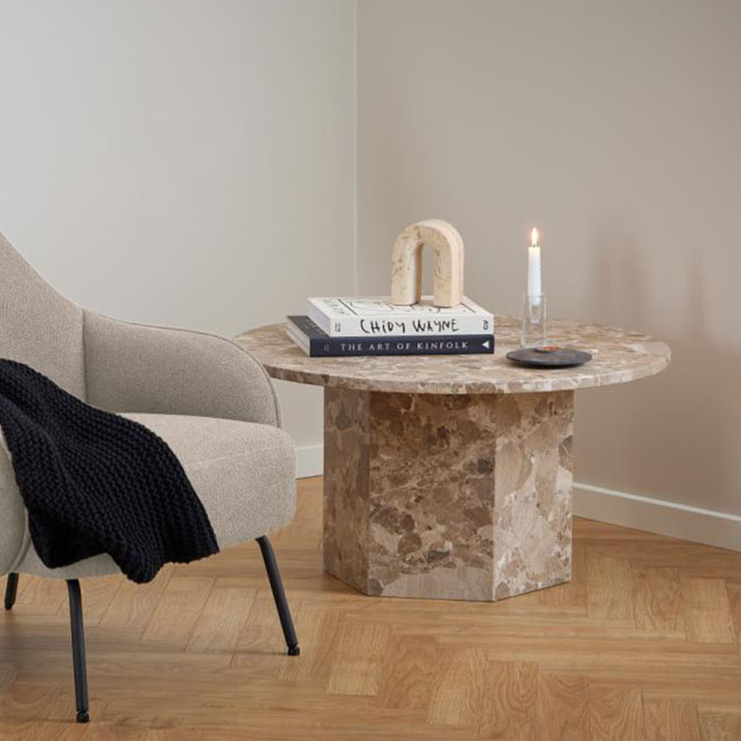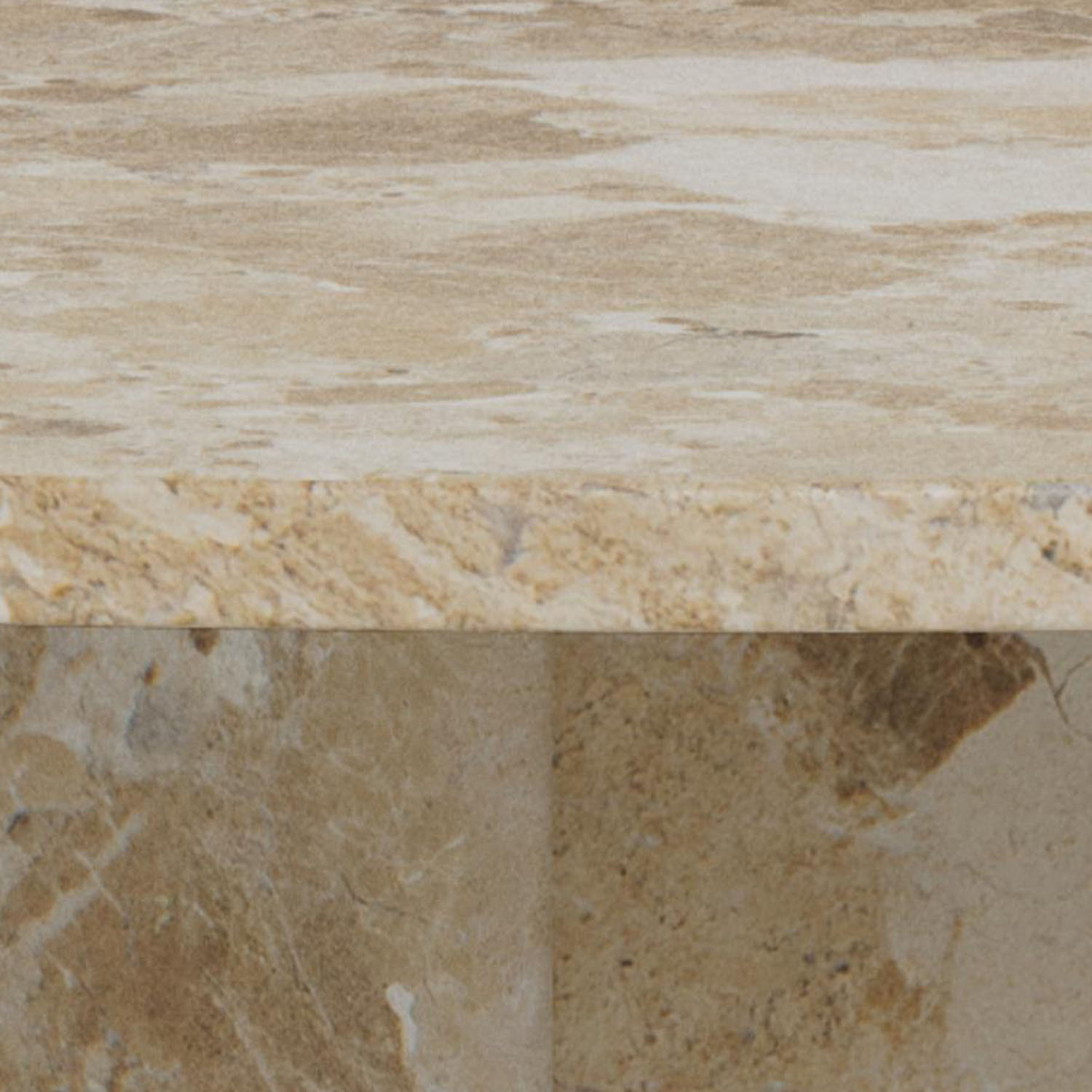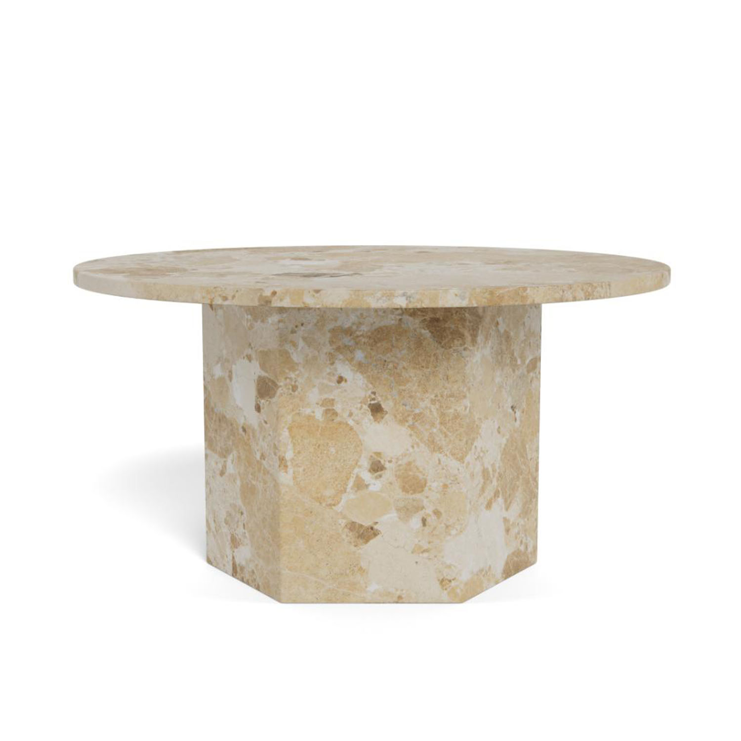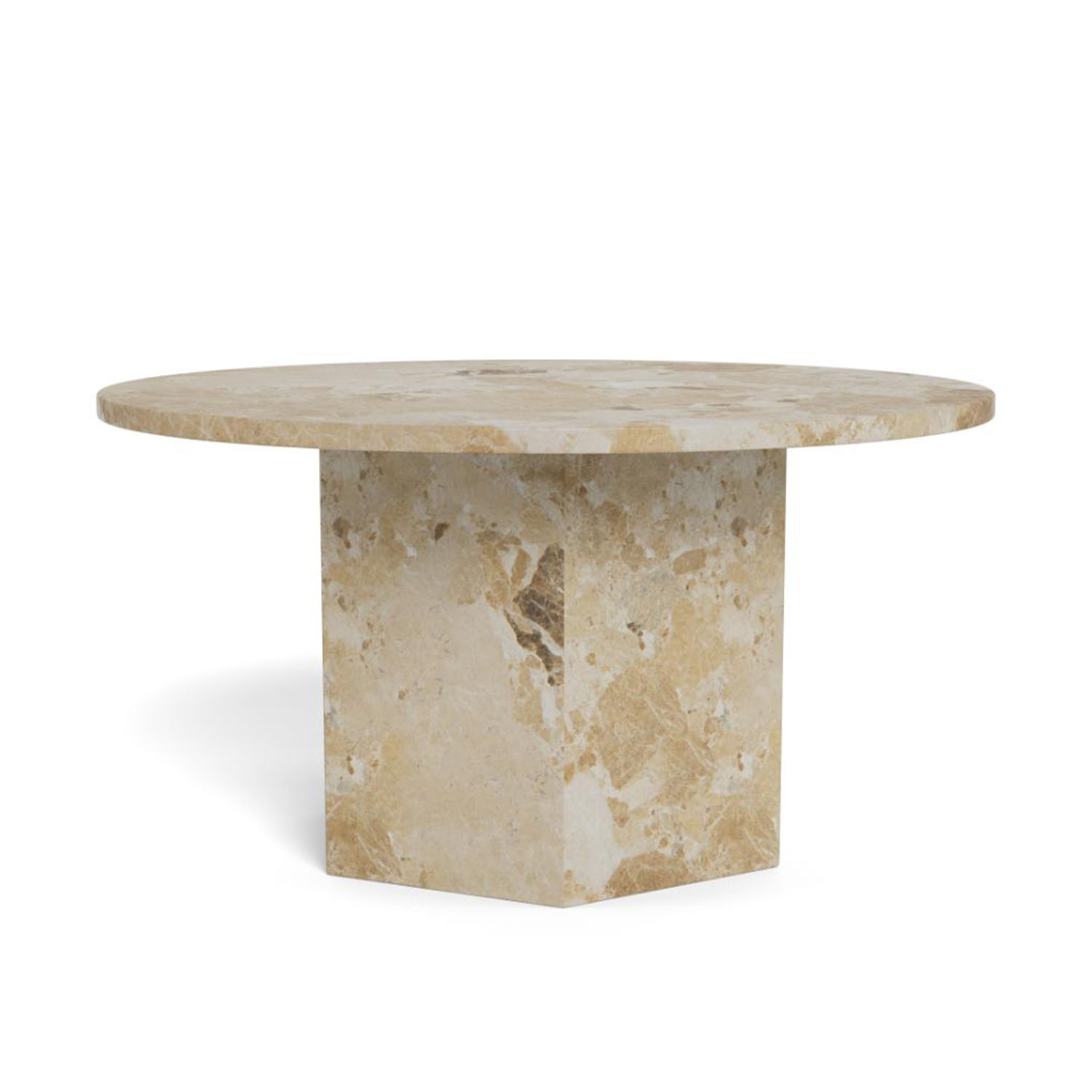 Măsuța de cafea rotundă, marmură, bej Naxos este o măsuță de cafea elegantă, cu un design modern și minimalist. Blatul este realizat din marmură bej cu finisaj mat, având un aspect natural, cu textură și variații specifice pietrei. Baza masuței cafea rotundă, marmură, bej Naxos are o formă geometrică hexagonală, oferind stabilitate și un look sofisticat. Stilul său se potrivește în interioare moderne, minimaliste sau luxoase, adăugând rafinament prin materialul premium. Datorită suprafeței din marmură, masa cafea rotundă, marmură, bej Naxos este ușor de întreținut și rezistentă la uzură.