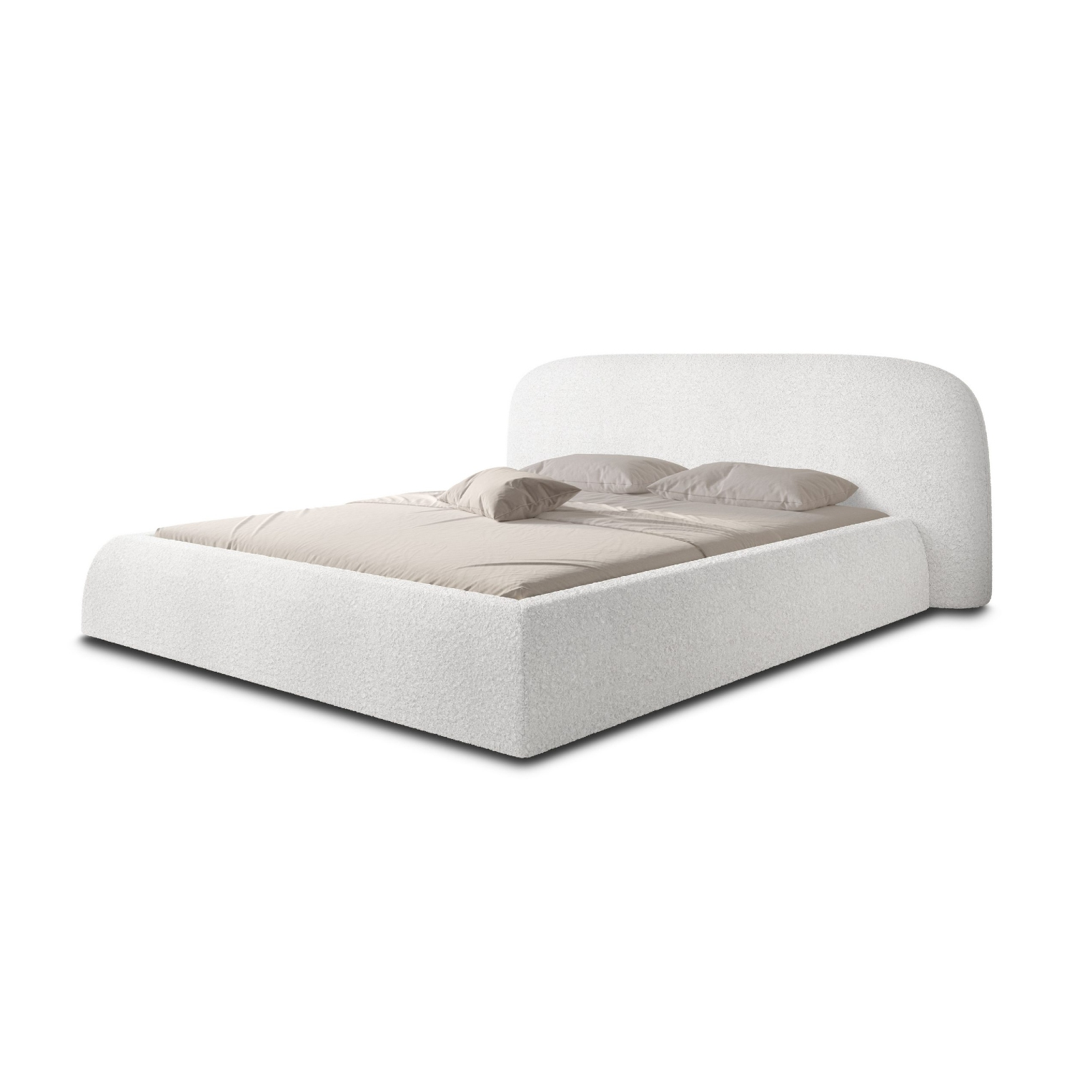 ✔️ Pat tapițat stilat cu tăblie rotunjită – modern, moale și confortabil