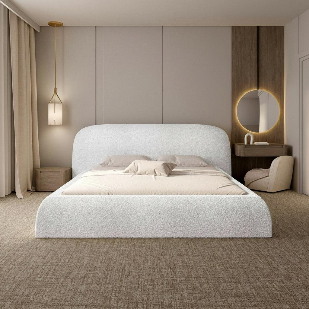✔️ Pat tapițat stilat cu tăblie rotunjită – modern, moale și confortabil