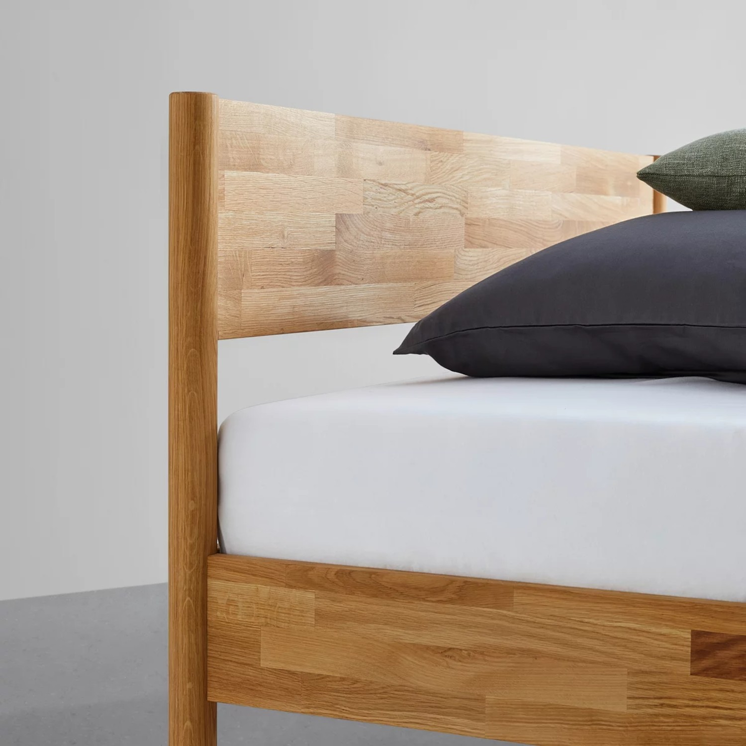 Patul 160 x 200 cm lemn masiv stejar Waden este o piesă de mobilier cu design modern și durabil, realizat din lemn masiv de stejar. Cadrul prezintă o structură solidă, cu îmbinare în dinți, care conferă stabilitate superioară și un aspect distinctiv. Finisajul uleiat al patului 160 x 200 cm lemn masiv stejar Waden evidențiază frumos fibra lemnului și oferă o protecție naturală, păstrând textura caldă și culoarea autentică a stejarlui. Tăblia minimalistă și liniile curate ale cadrului fac ca patul 160 x 200 cm lemn masiv stejar Waden să se potrivească perfect în dormitoare decorate în stil scandinav, modern sau minimalist.