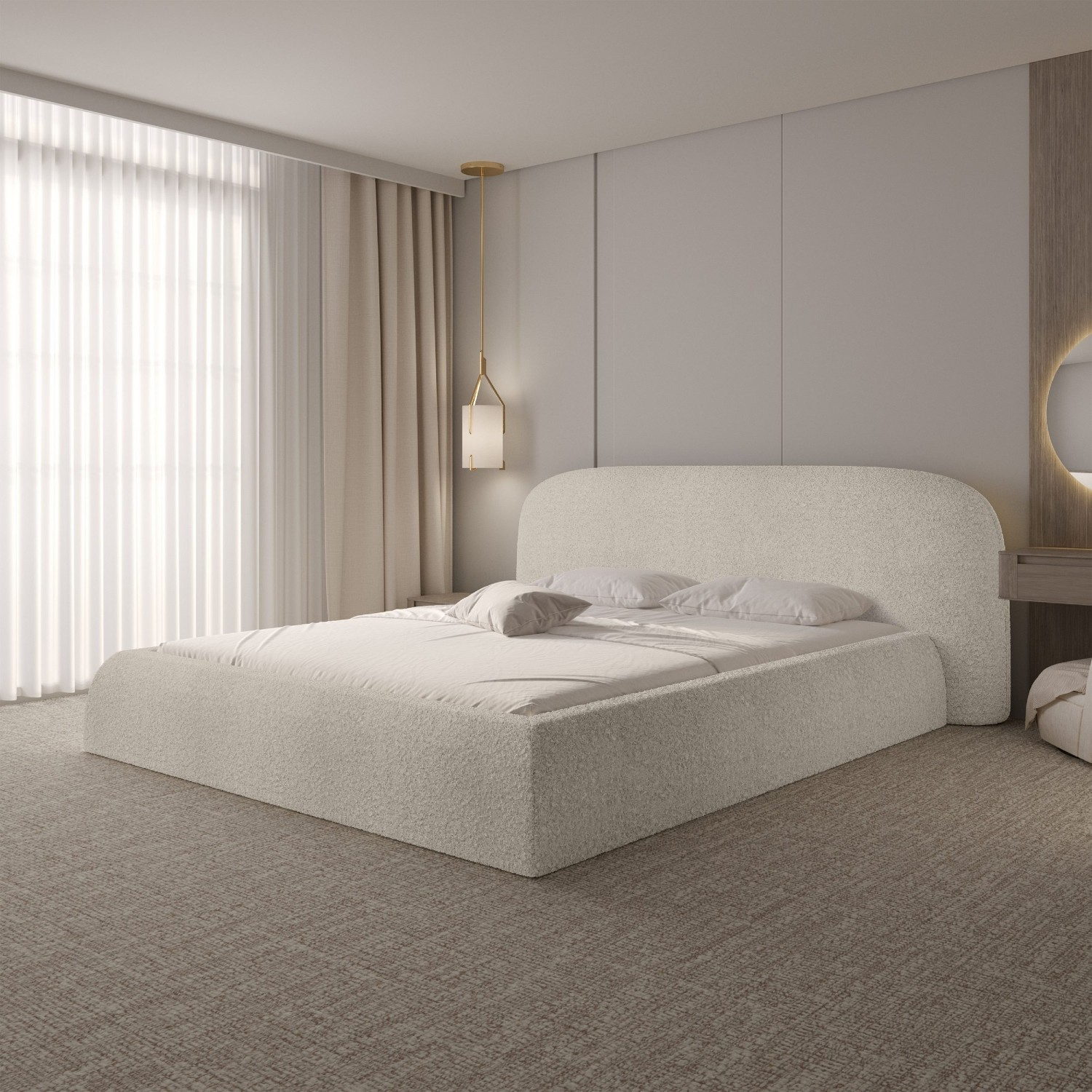 ✔️ Material textil de calitate - tapițerie boucle (Quelle 01), fină la atingere și ușor de integrat în orice decor
