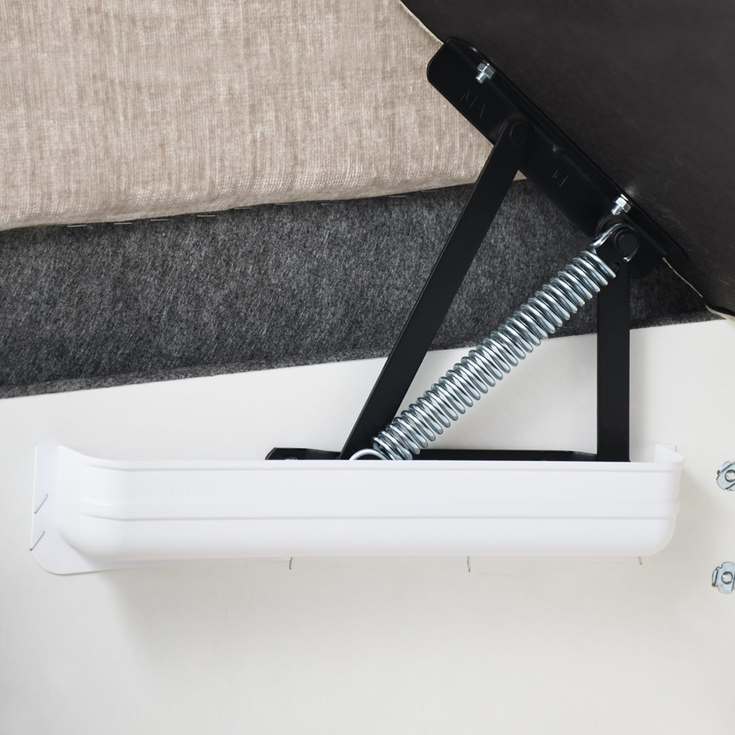 Patul tapițat boxspring 160 x 200 cm bej Noel dispune de două spații de depozitare generoase, accesibile prin ridicarea saltelei din ambele laterale – o soluție practică pentru organizarea lenjeriilor, pernelor sau accesoriilor de sezon. Înălțimea sezutului de 63 cm facilitează urcarea și coborârea din pat, iar picioarele de 13 cm permit o aerisire optimă, contribuind la durabilitatea saltelei și la menținerea unui climat igienic.