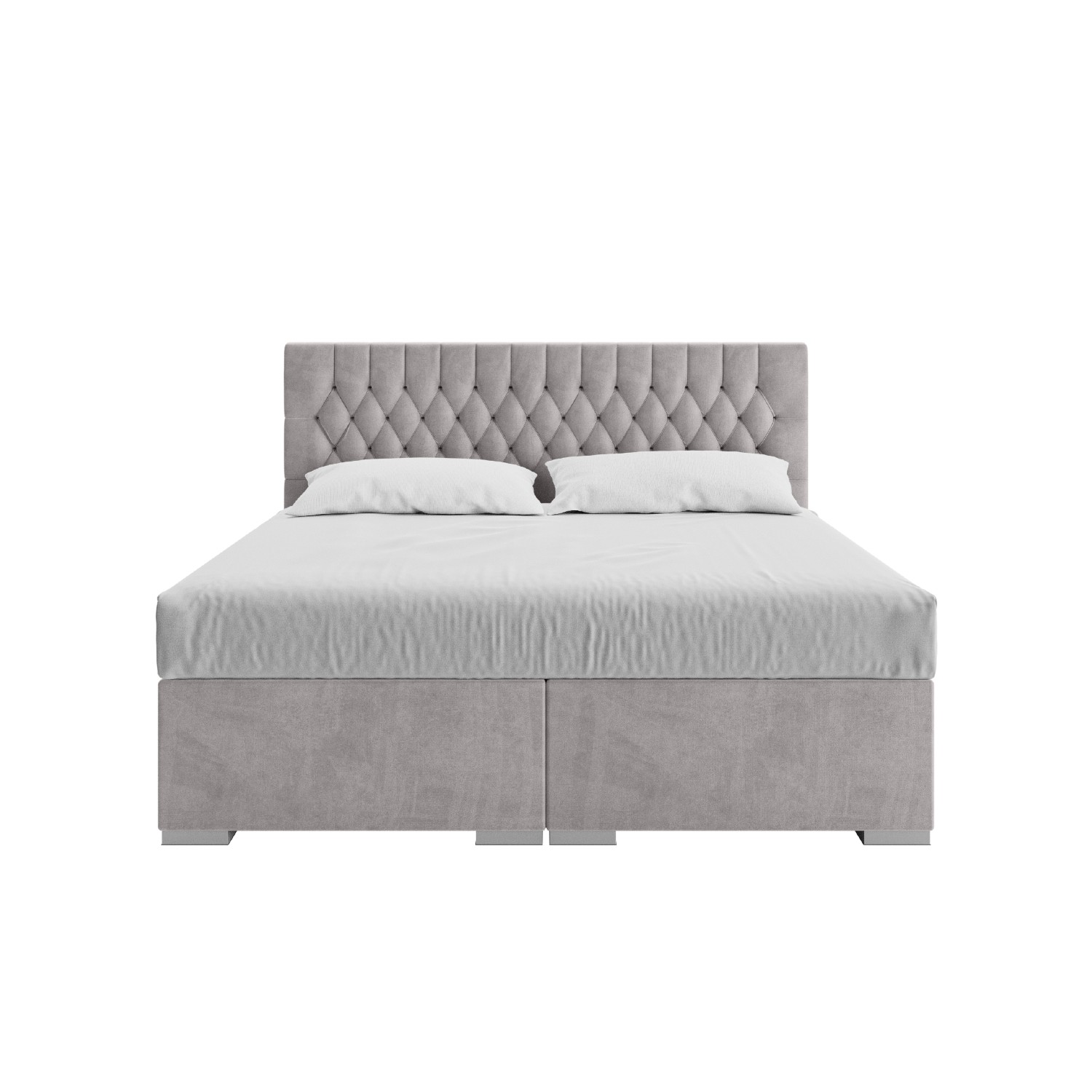 Picioarele, realizate din plastic de culoare gri, cu o înălțime de 3 cm, permit circulația aerului sub pat și aerisirea saltelei, păstrând astfel durabilitatea acesteia. Bucură-te de un dormitor luxos și un somn odihnitor cu patul tapițat boxspring 160 x 200 cm gri deschis Dalia.