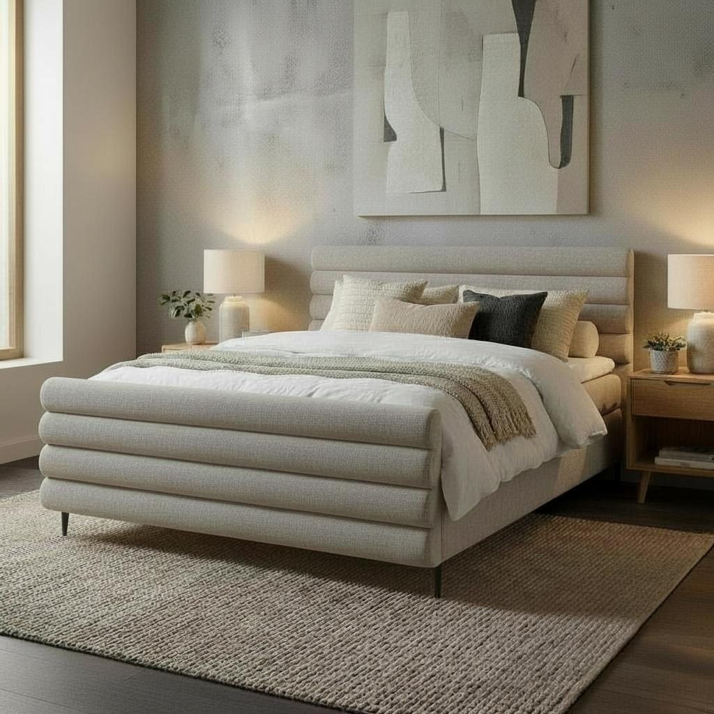 Designul atent realizat subliniază calitatea premium a patului Noel, iar nuanța gri deschis oferă un plus de luminozitate și eleganță în orice tip de decor. Modelul este disponibil pe site și în variantele 140 × 200 cm, 160 × 200 cm și 180 × 200 cm, precum și în mai multe culori pentru a se adapta perfect stilului tău.