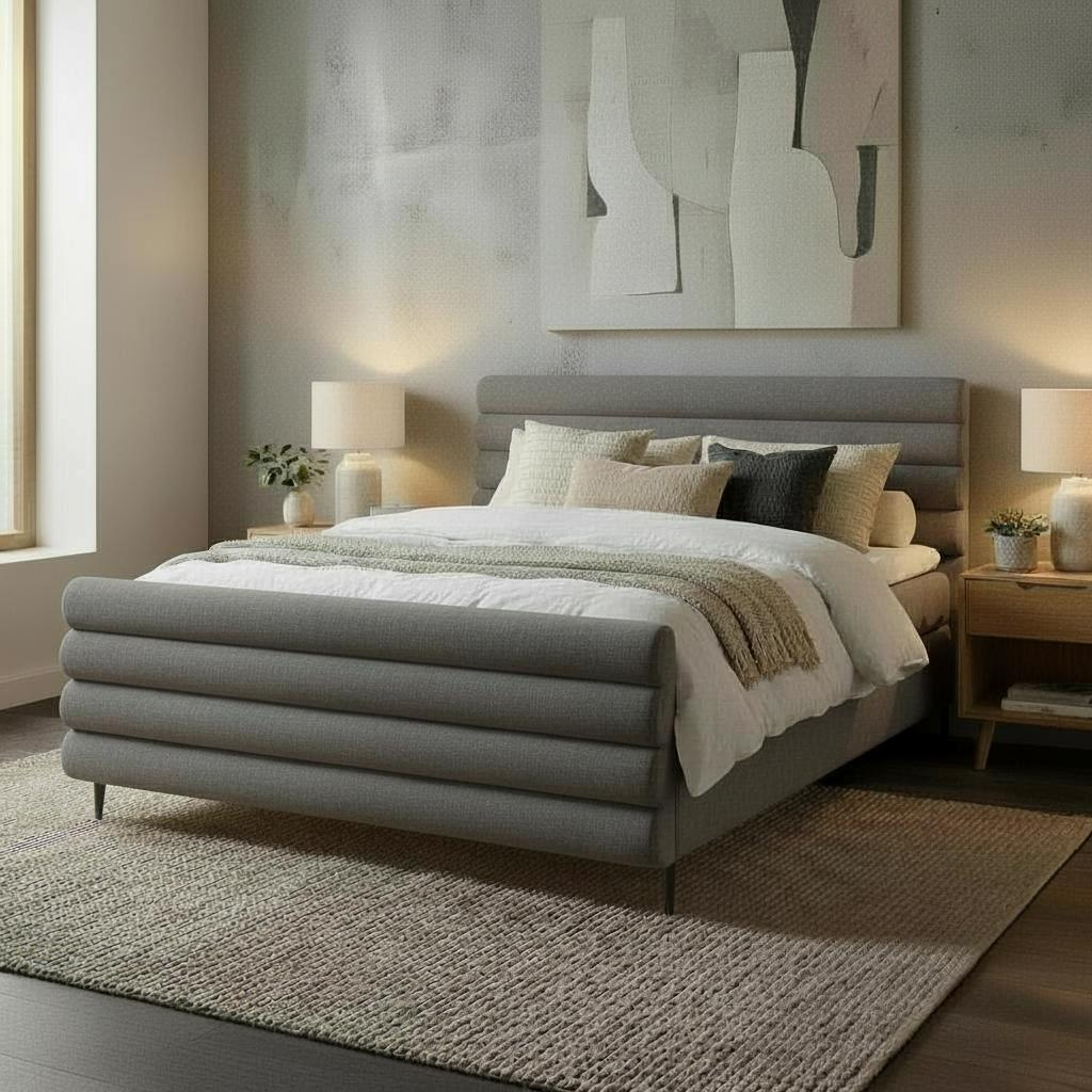 Designul atent realizat subliniază calitatea premium a patului Noel, iar nuanța gri inchis oferă un plus de luminozitate și eleganță în orice tip de decor. Modelul este disponibil pe site și în variantele 140 × 200 cm, 160 × 200 cm și 180 × 200 cm, precum și în mai multe culori pentru a se adapta perfect stilului tău.