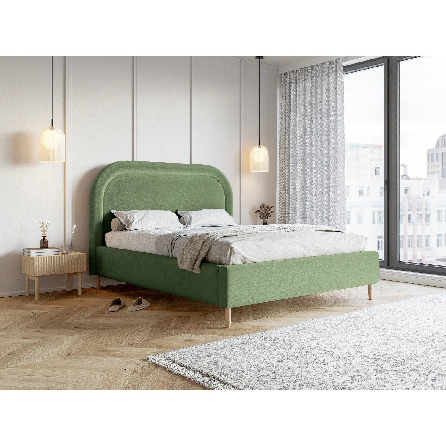Pentru stabilitate și un design natural, patul este prevăzut cu picioare din lemn cu finisaj natur, cu o înălțime de 15 cm. Această înălțime permite curățarea ușoară a pardoselii de sub pat și menținerea unui spațiu igienic în dormitor.