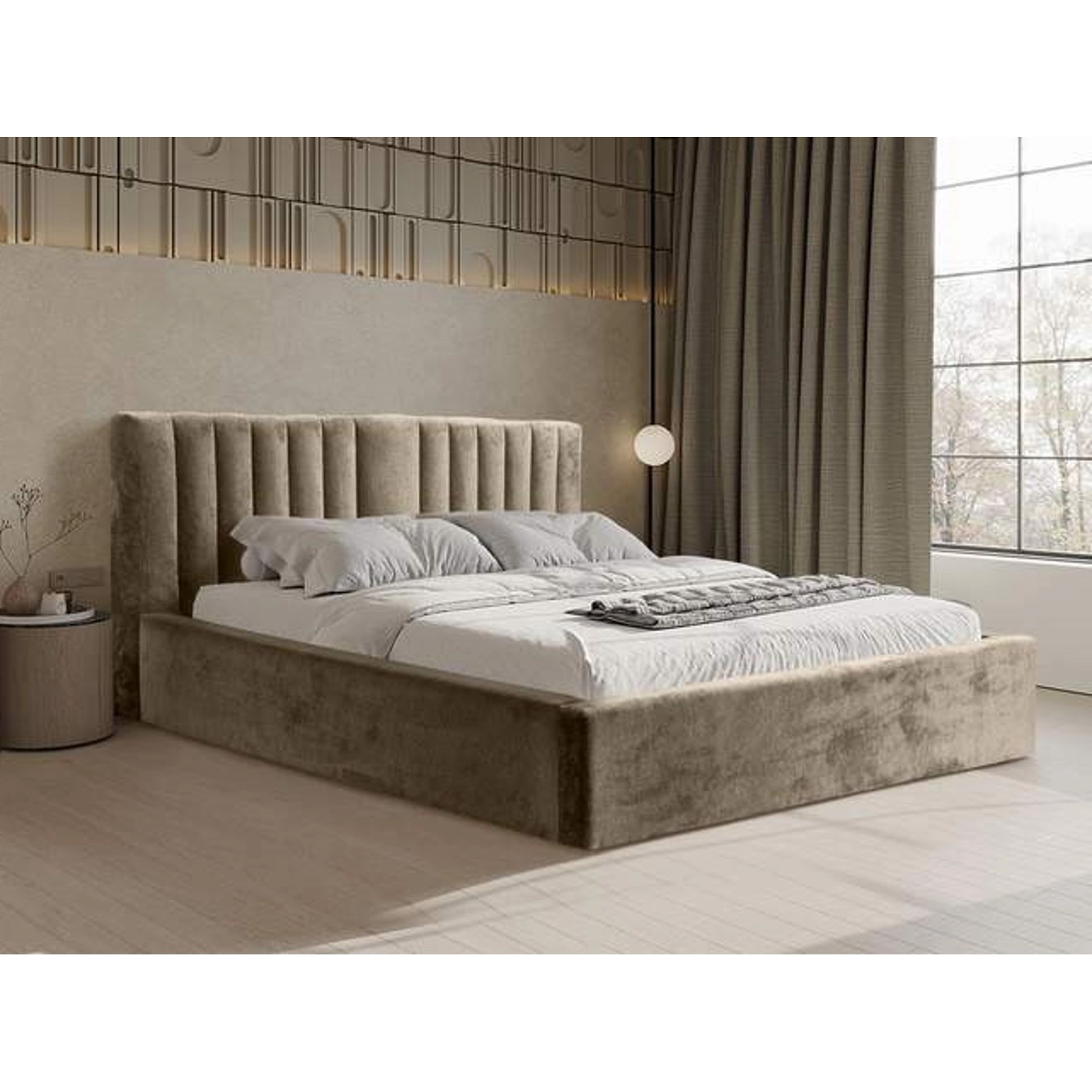 Patul tapitat 140 x 200 cm bej deschis Vegas VI cu somiera rabatabila este perfect pentru un dormitor modern si creeaza o atmosfera cozy datorita matlasarii tabliei si textilului de calitate din care este realizata tapiteria. Este un pat clasic, iar tablia cu umplutura de tapiterie este decorata cu linii verticale, dintre care cea din mijloc este mai lata decat restul, pentru un plus de design. Un avantaj suplimentar al patul tapitat 140 x 200 cm bej deschis Vegas VI cu somiera rabatabila este lada de depozitare spatioasa care permite pastrarea ordonata a lenjeriei de pat sau a pilotelor. Patul este echipat cu un suport pentru saltea prevazut cu sistem de ridicare cu arc care face ca ridicarea somierei sa fie usoara. Textilul catifelat (Perfect Harmony 04) care acopera patul este placut la atingere si creeaza un plus de confort.