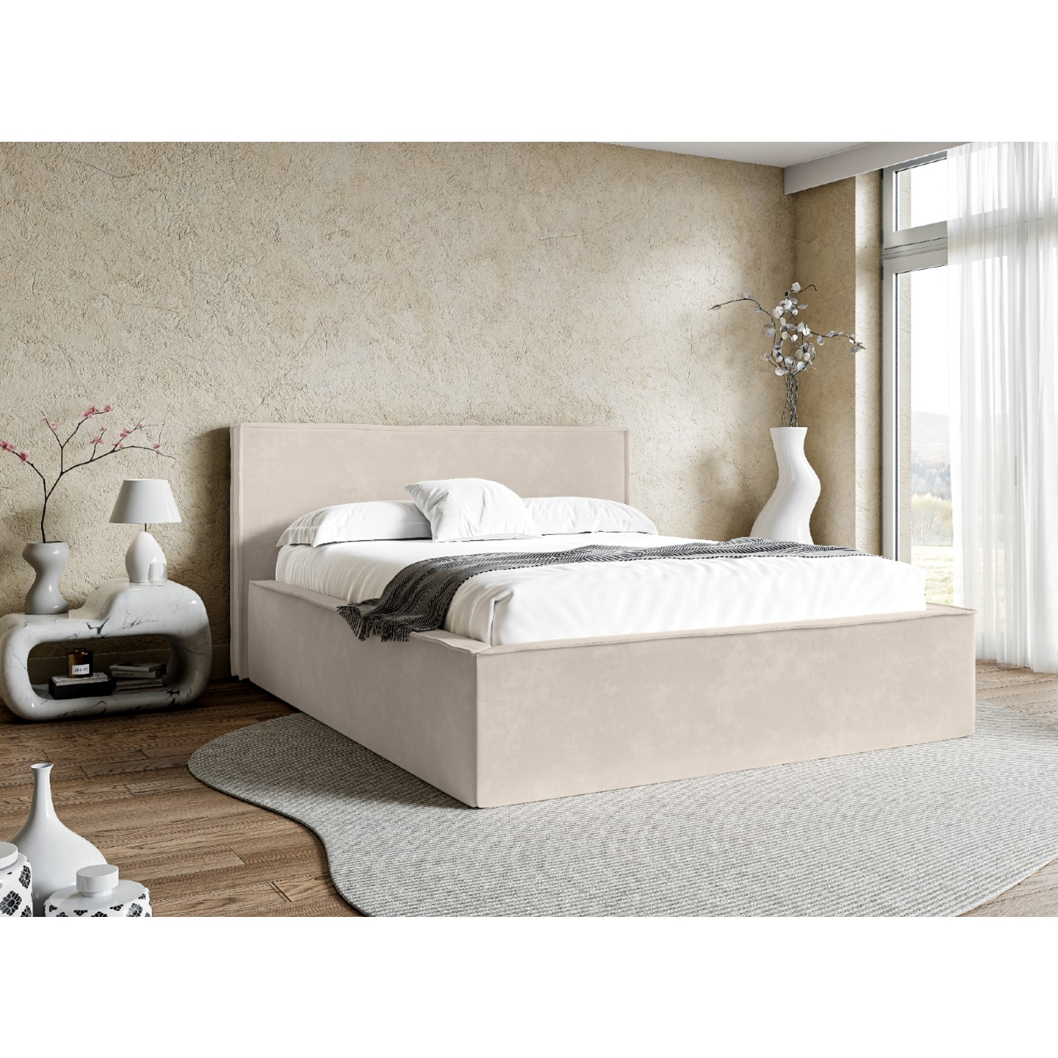 Patul tapitat 140x200 cm bej Velvet cu somieră rabatabilă și ladă de depozitare este alegerea ideală pentru un dormitor modern, elegant și funcțional. Designul clasic, evidențiat prin linii drepte și finisaje rafinate, se integrează ușor în orice stil de amenajare, de la minimalist la contemporan.