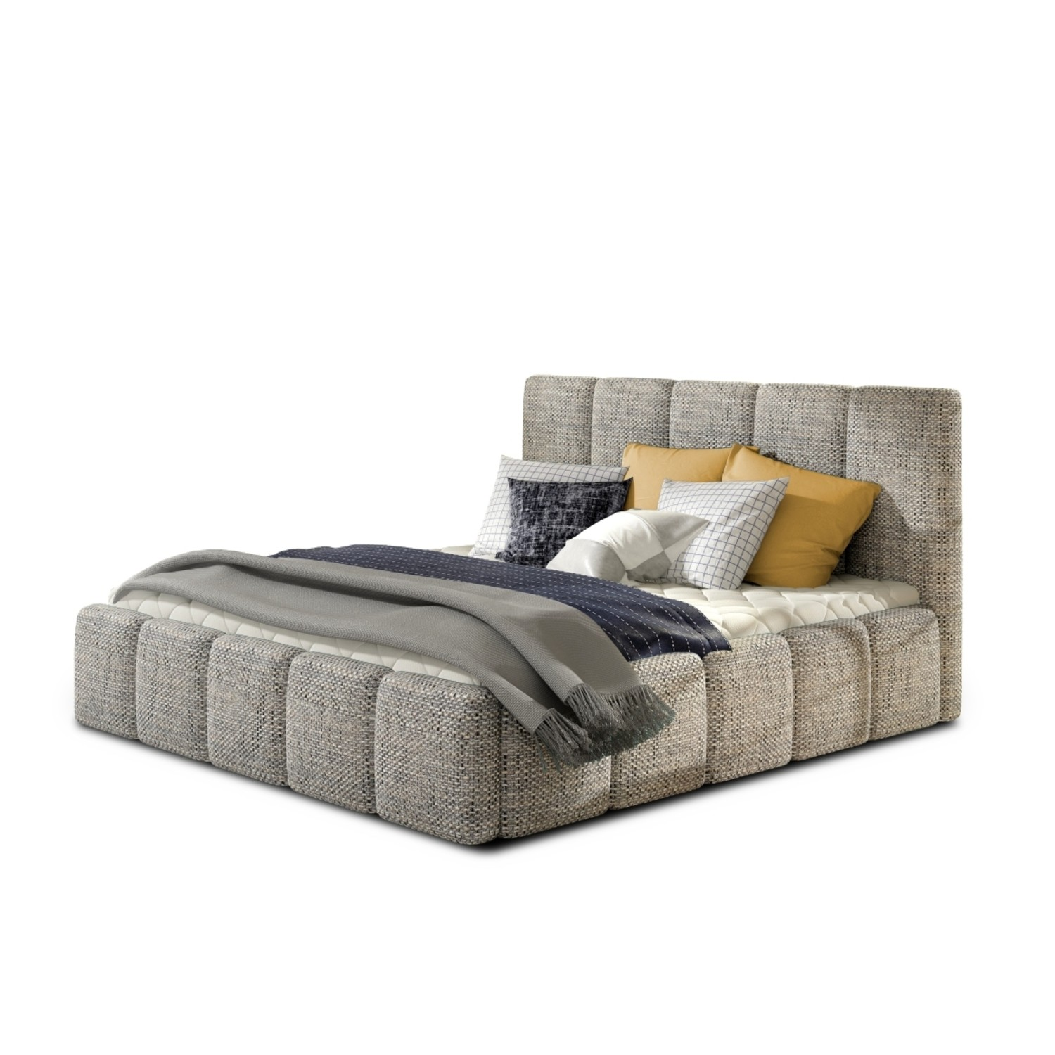 Patul tapițat cu somieră rabatabilă 140 x 200 cm gri Erica o alegere bună pentru un dormitor elegant, datorită stilul său extrem de rafinat. Designul modern, care adaugă rafinament, face din patul Erica cel mai popular model al nostru pentru cei care caută dormitoare elegante și confortabile. Stilul este pur și simplu încântător, cu tăblia înaltă și panourile laterale ale cadrului căptușite cu spumă de tapițerie, fiecare împărțit în secțiuni prin cusături verticale cu accente orizontale de tufting tipice designului eclectic și elegant. Textilul de calitate care acoperă patul (Berlin 01) este confortabil, rezistent la uzură și își păstrează frumusețea timp îndelungat.