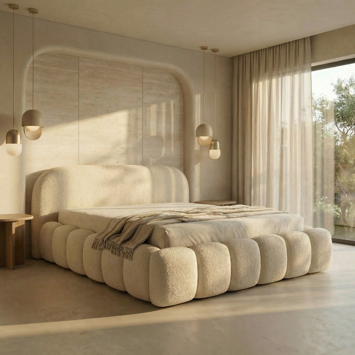 ✔️ Tapițerie bouclé moale, plăcută și ușor de asortat