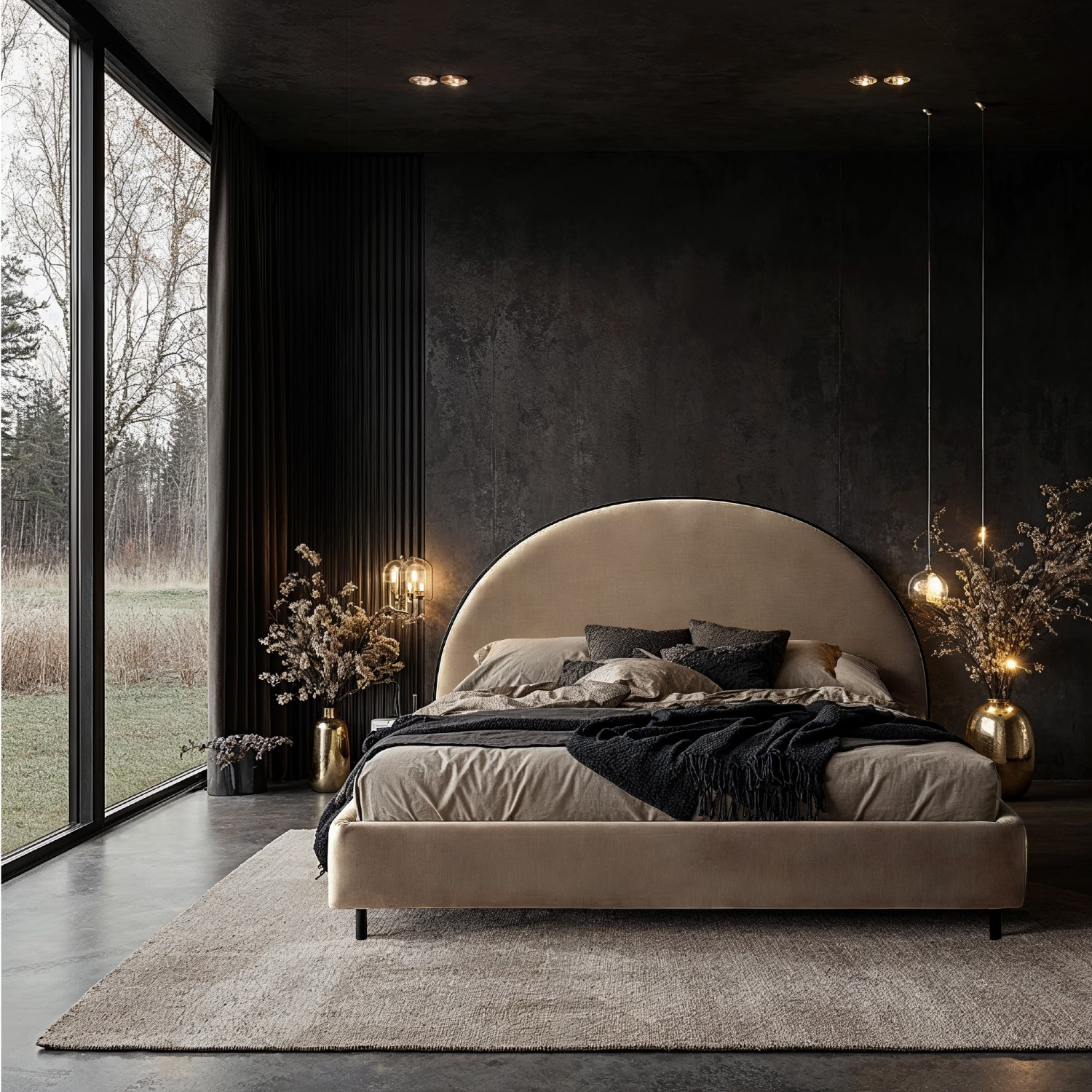 ✔️ Tăblie semirotundă cu înălțime de 135 cm inspirată de răsărituri și apusuri, care oferă un aspect cald și rafinat.